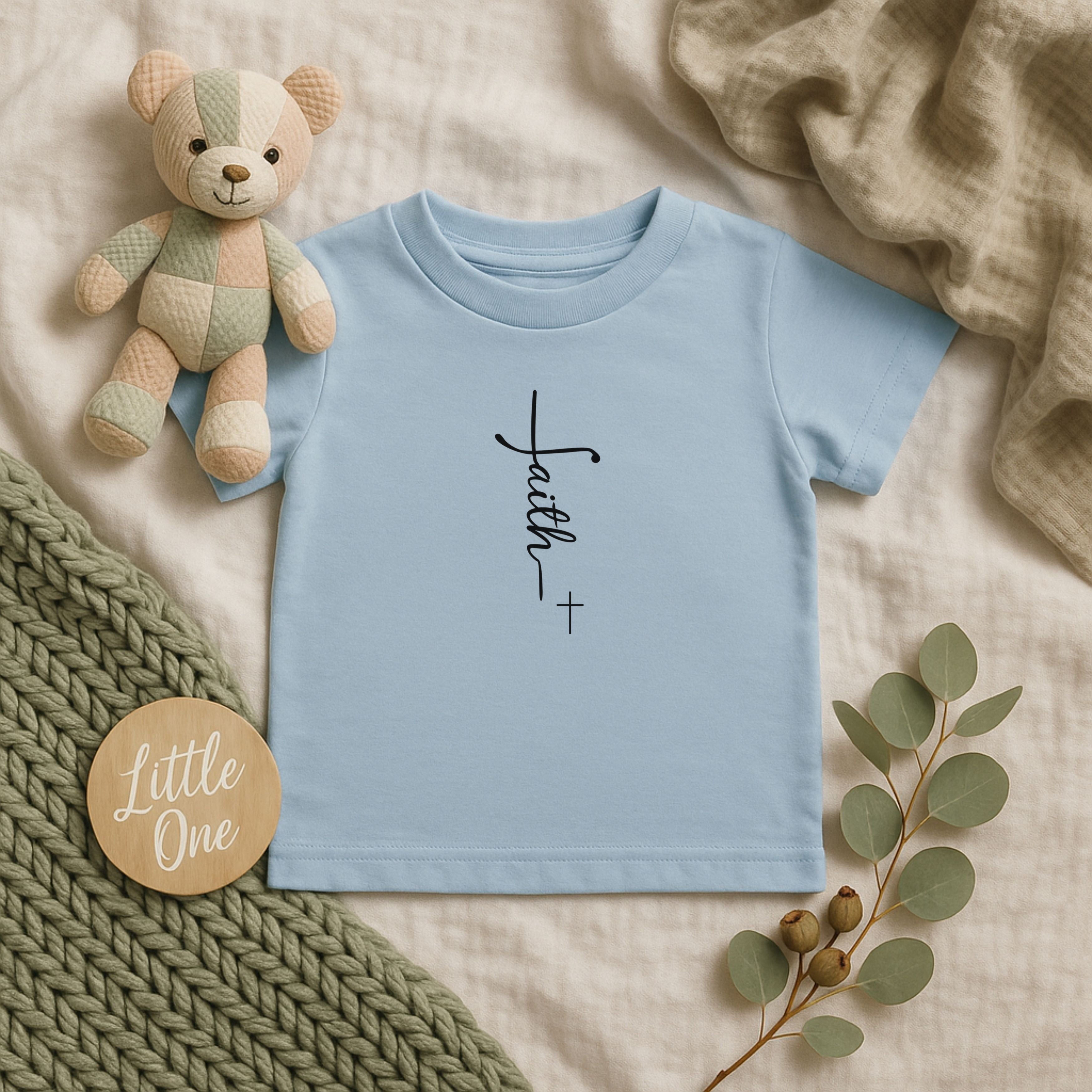 Soft, simple, and quietly meaningful — this infant tee brings gentle faith-forward style to a little one’s everyday wardrobe.