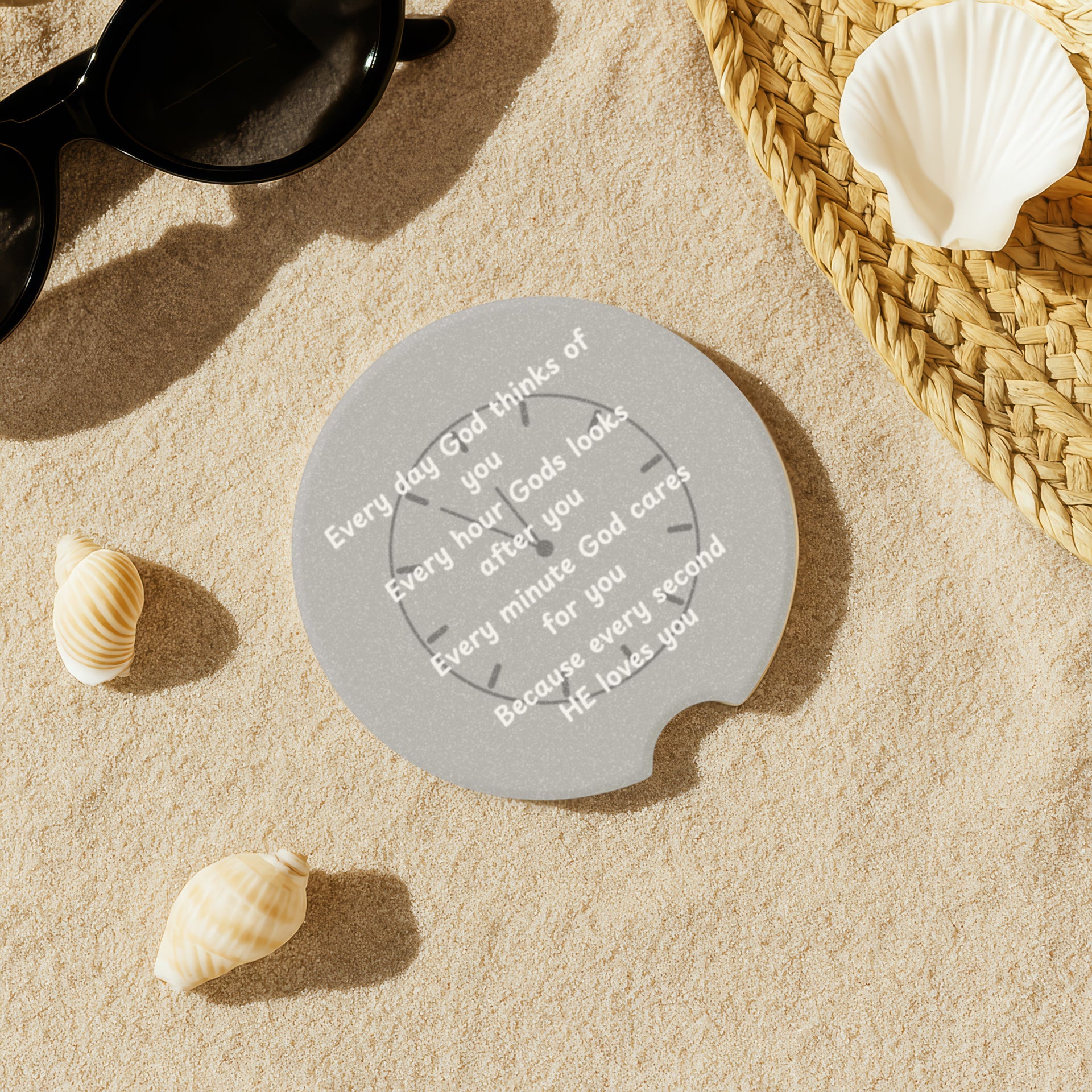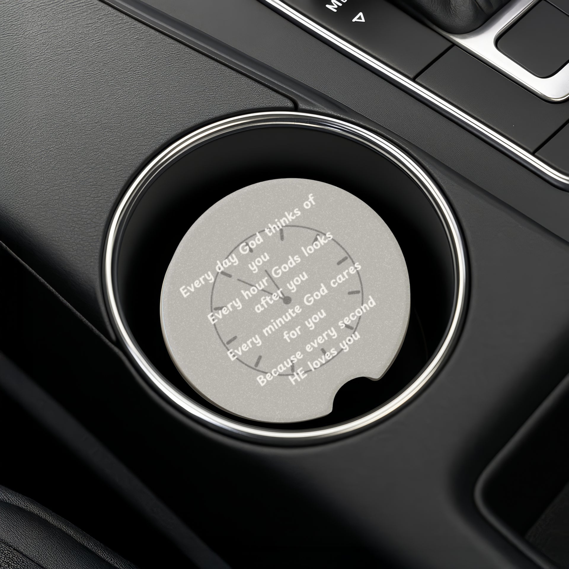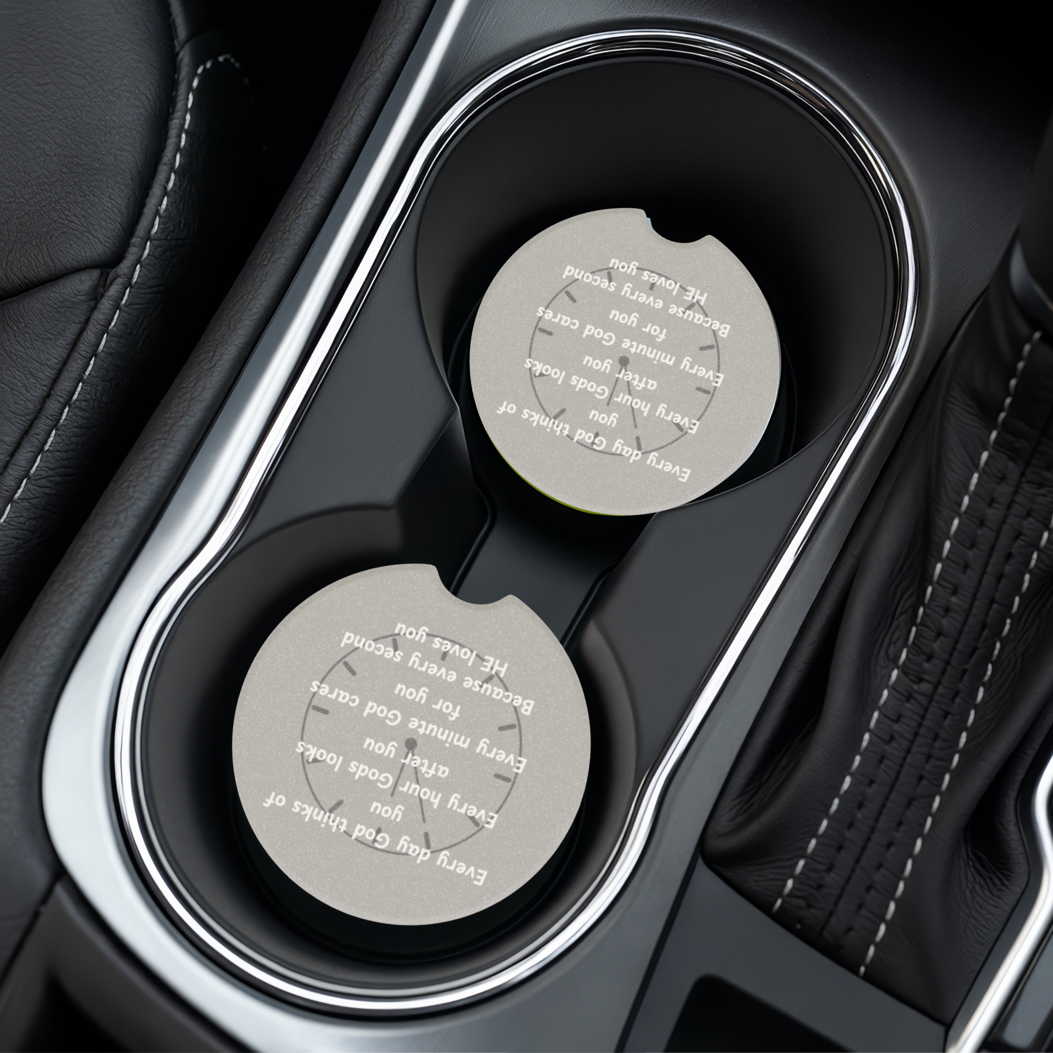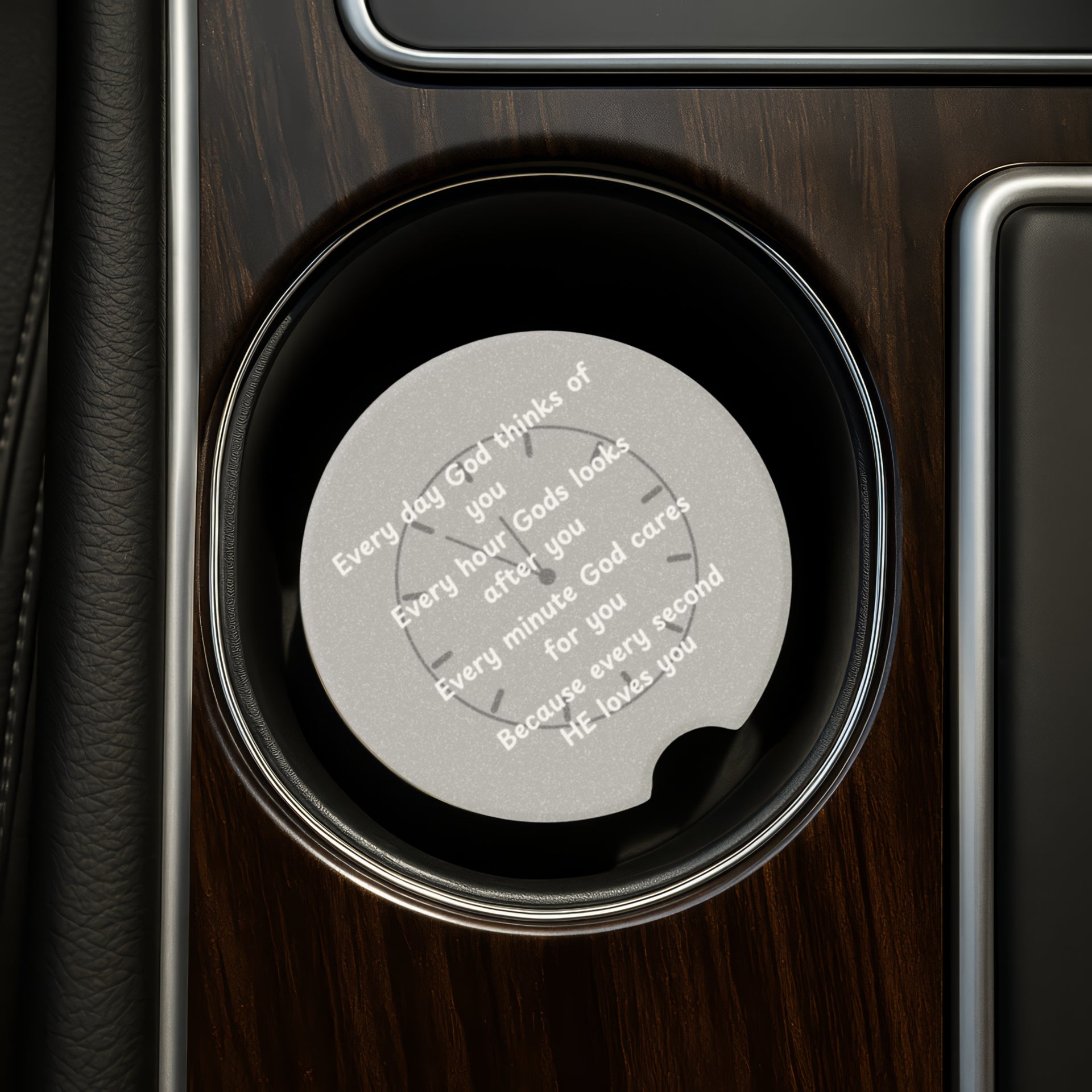 Crafted from durable, absorbent soapstone, this coaster keeps your cup holders clean by soaking up spills and condensation. The engraved “Every Day God Thinks of You” message makes it more than just a practical accessory—it’s a source of daily encouragement for your journey.
