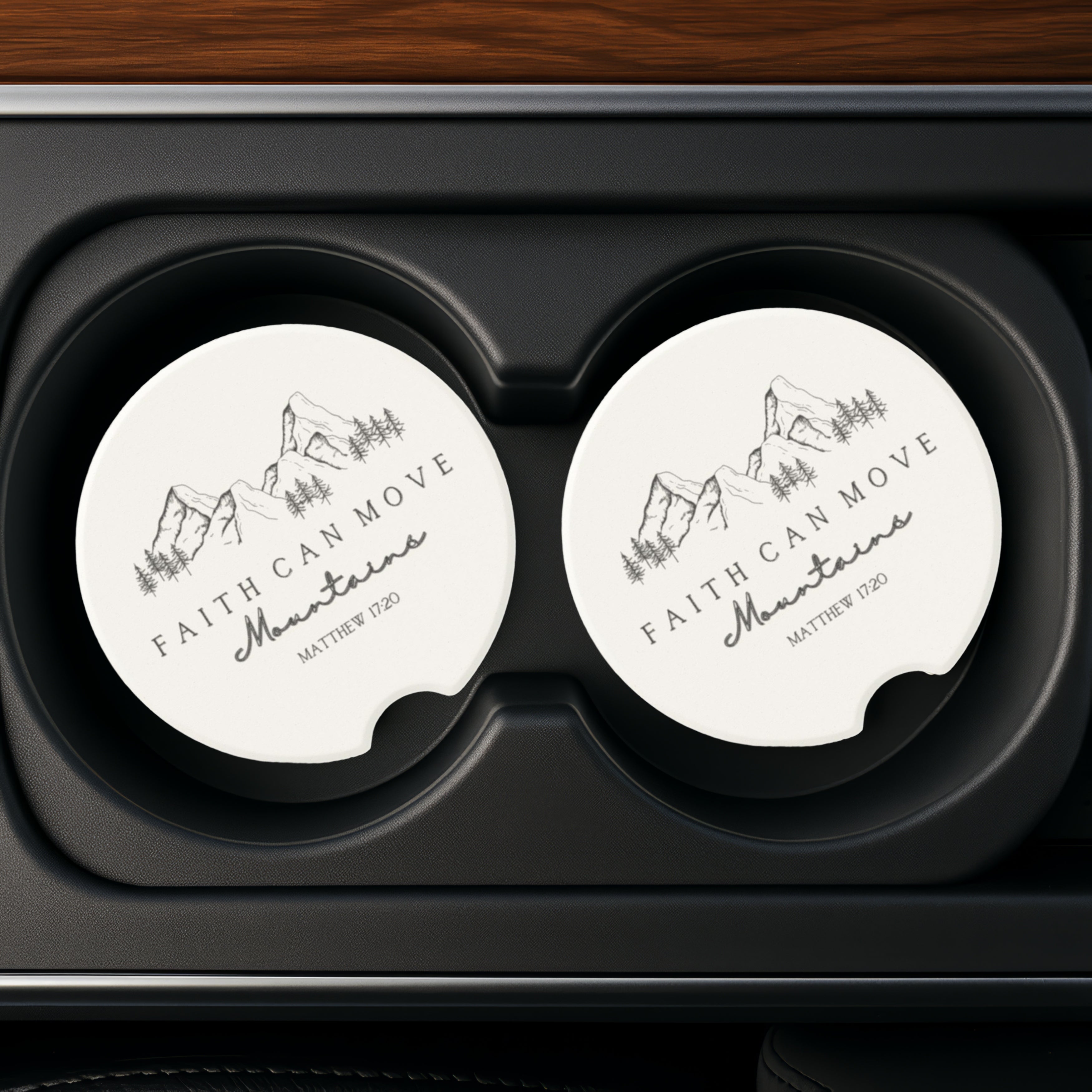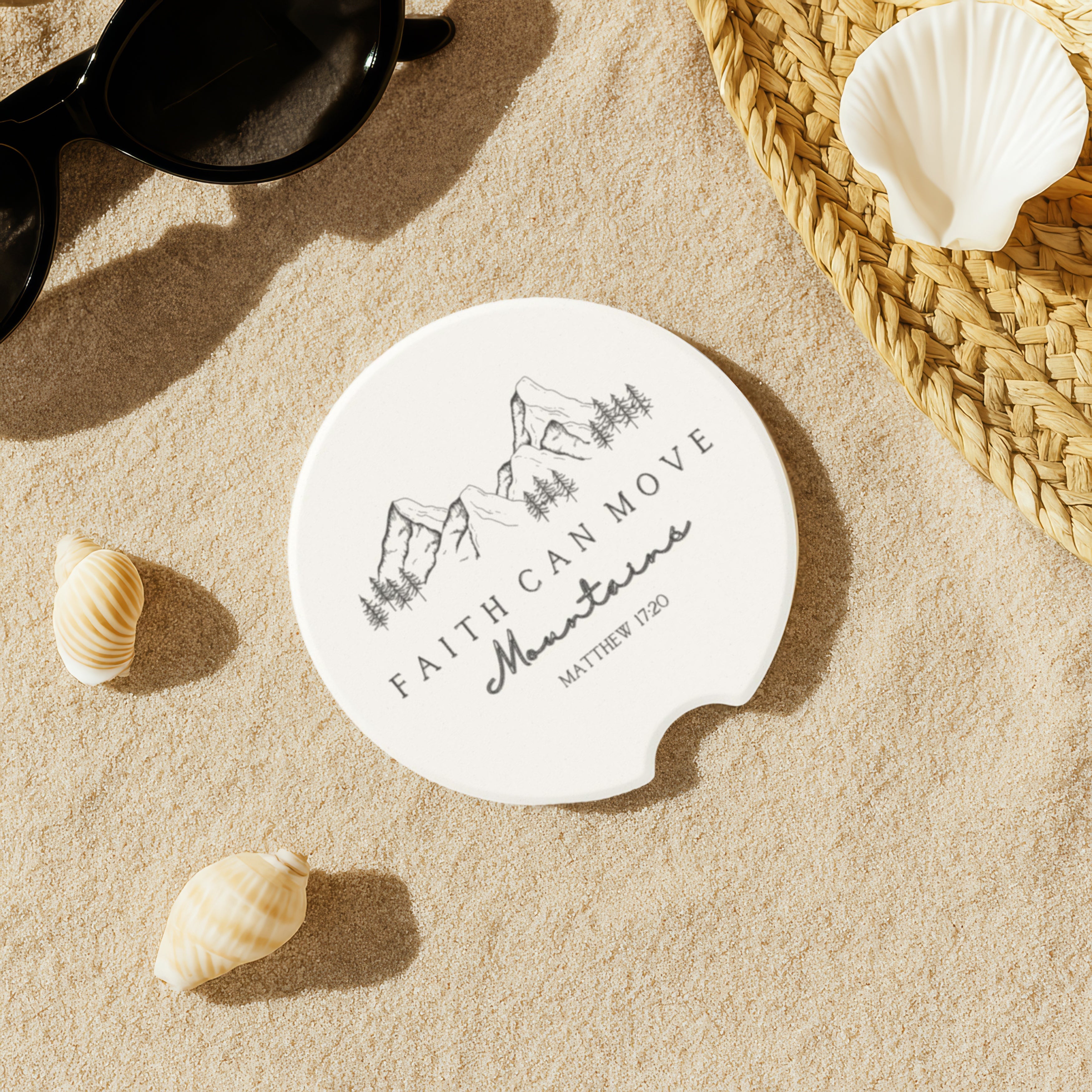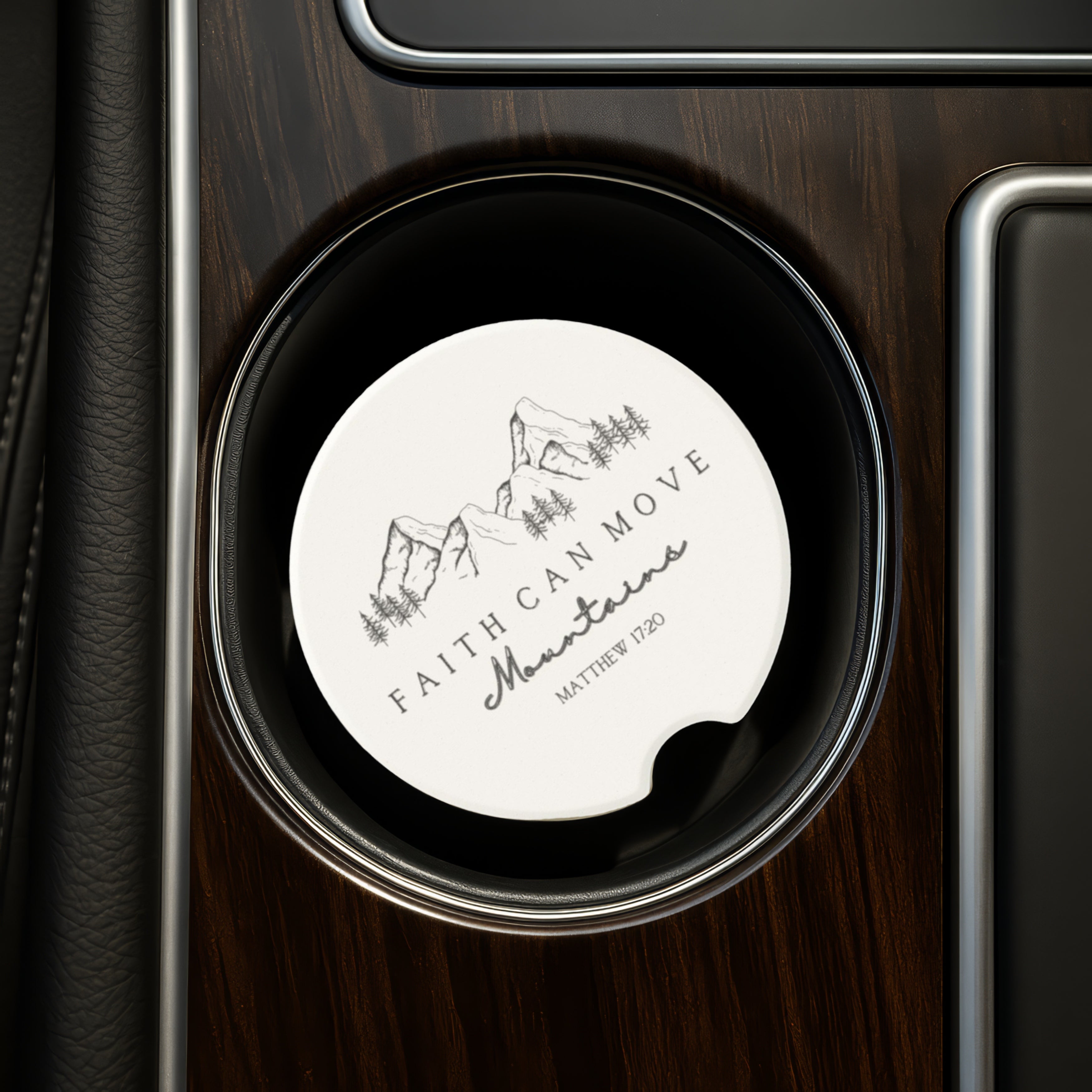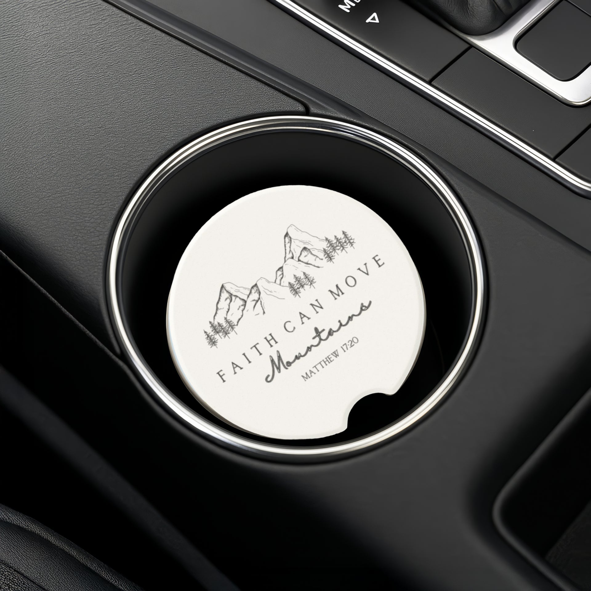 Crafted from durable, absorbent soapstone, they naturally soak up condensation and protect your car’s cup holders from spills and stains. Featuring the engraved phrase “Faith Can Move Mountains”, they bring both inspiration and practicality to your vehicle’s interior.