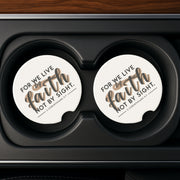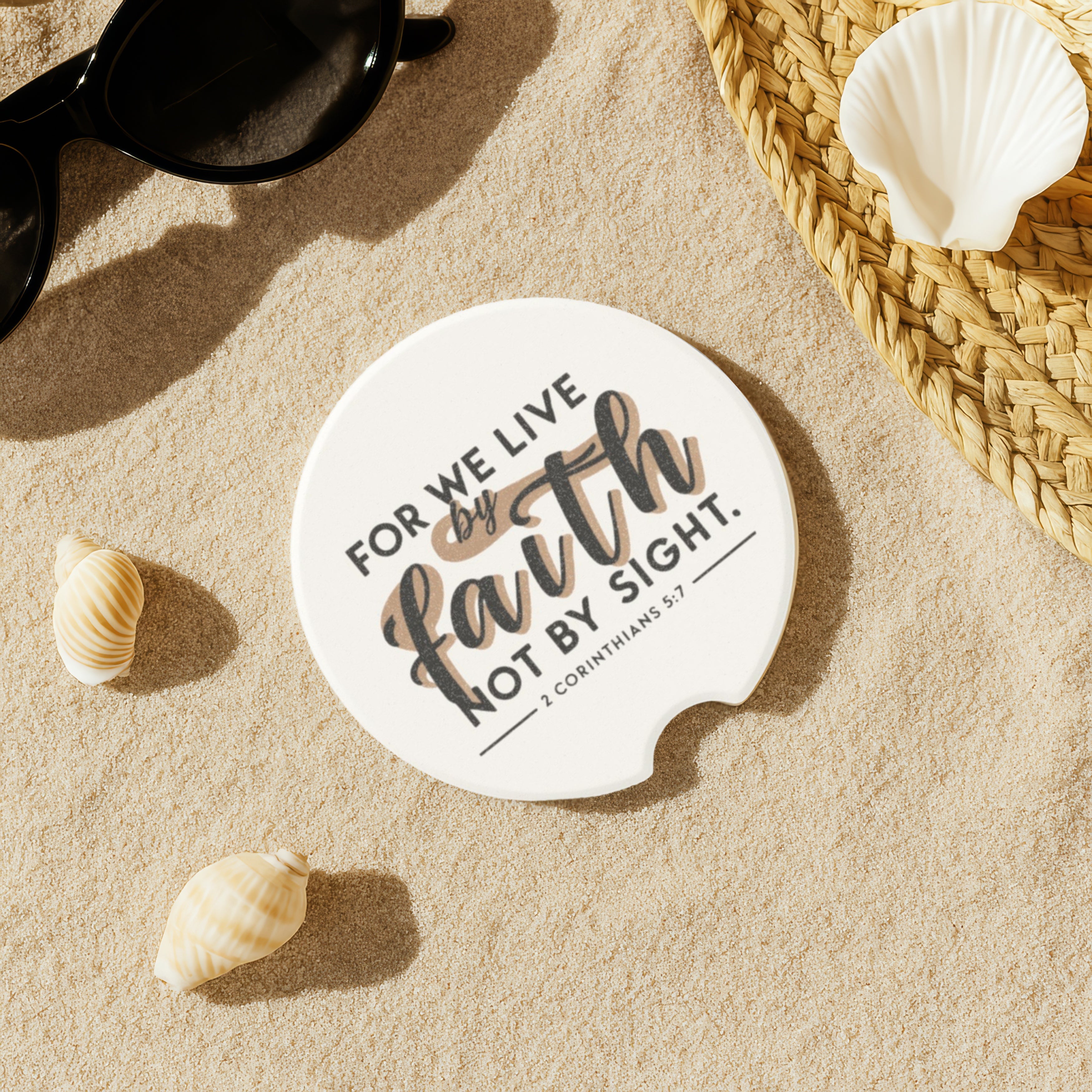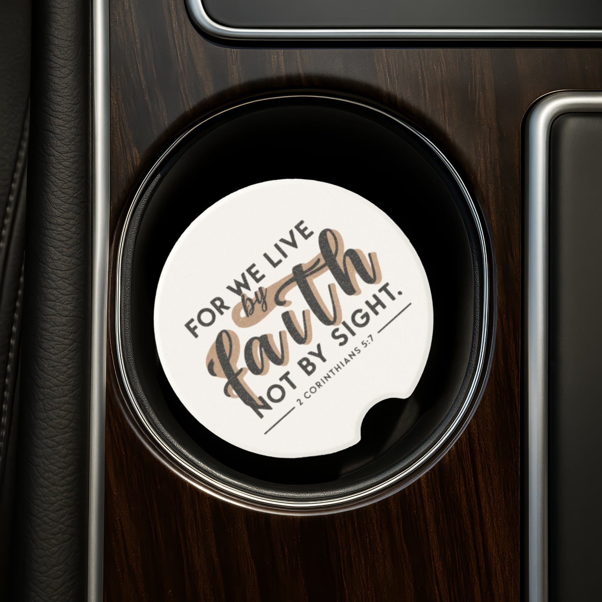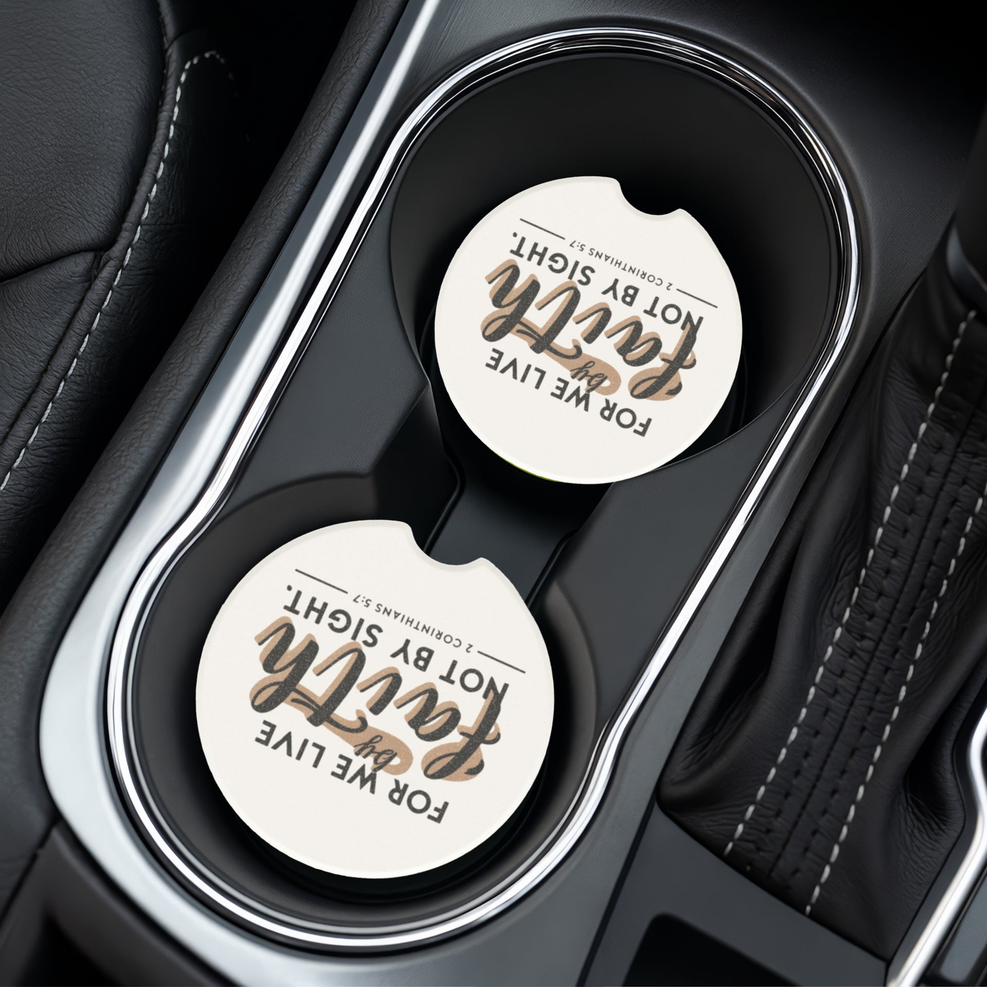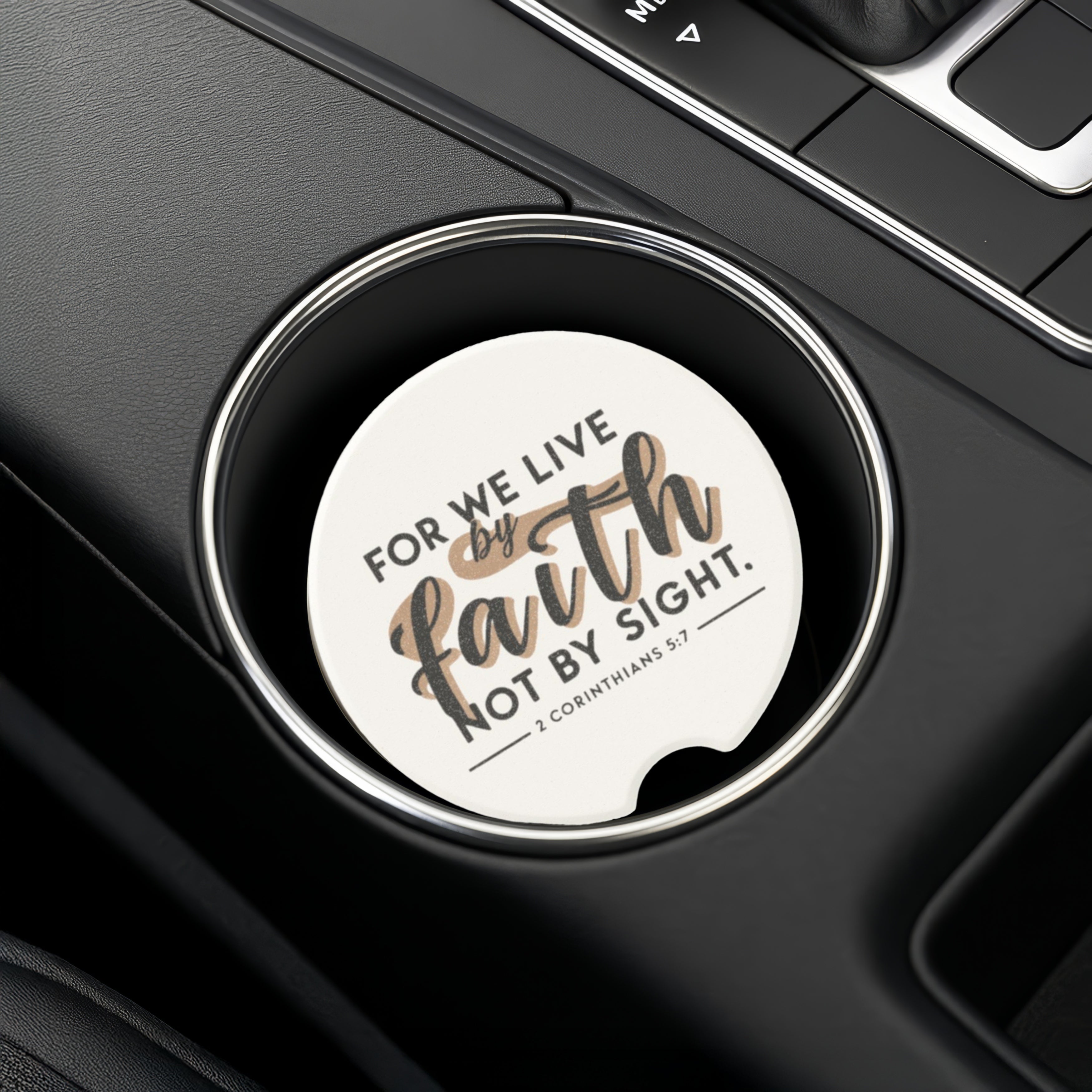 Made from premium absorbent soapstone, they naturally soak up condensation and protect your cup holders from spills and stains. The engraved “For We Live By Faith, Not By Sight” design combines function with encouragement, making your car both cleaner and more inspiring.