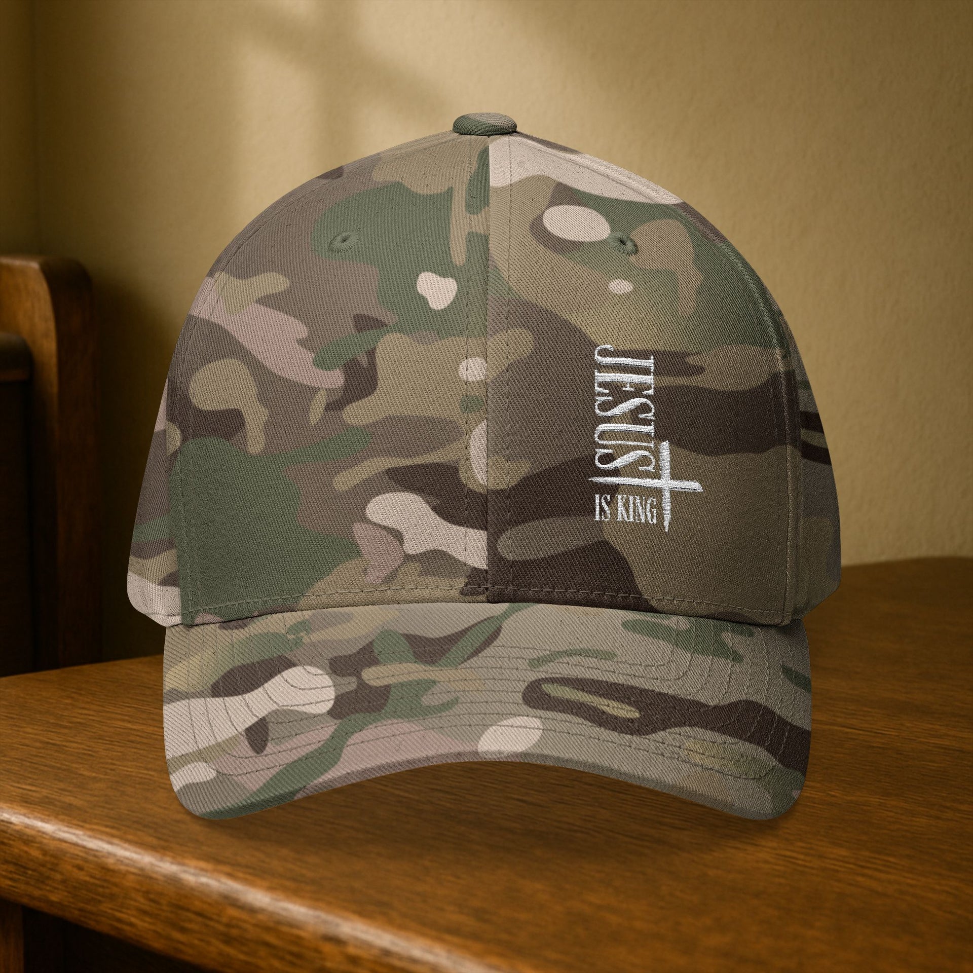 The “Jesus Is King” Flexfit Hat is a bold and wearable declaration of faith.