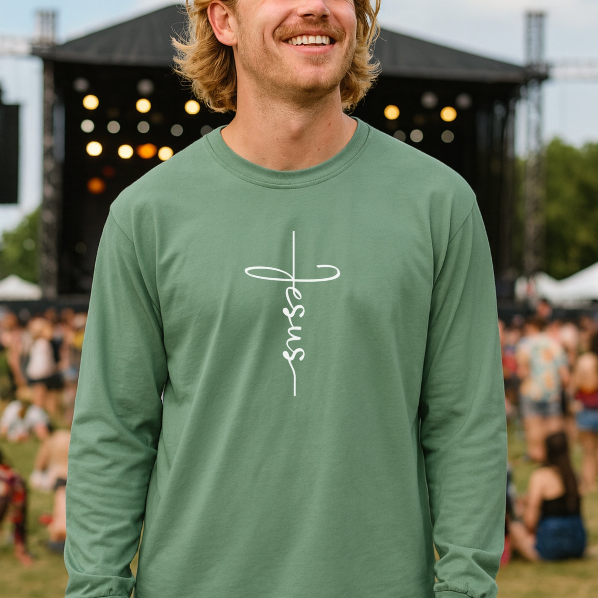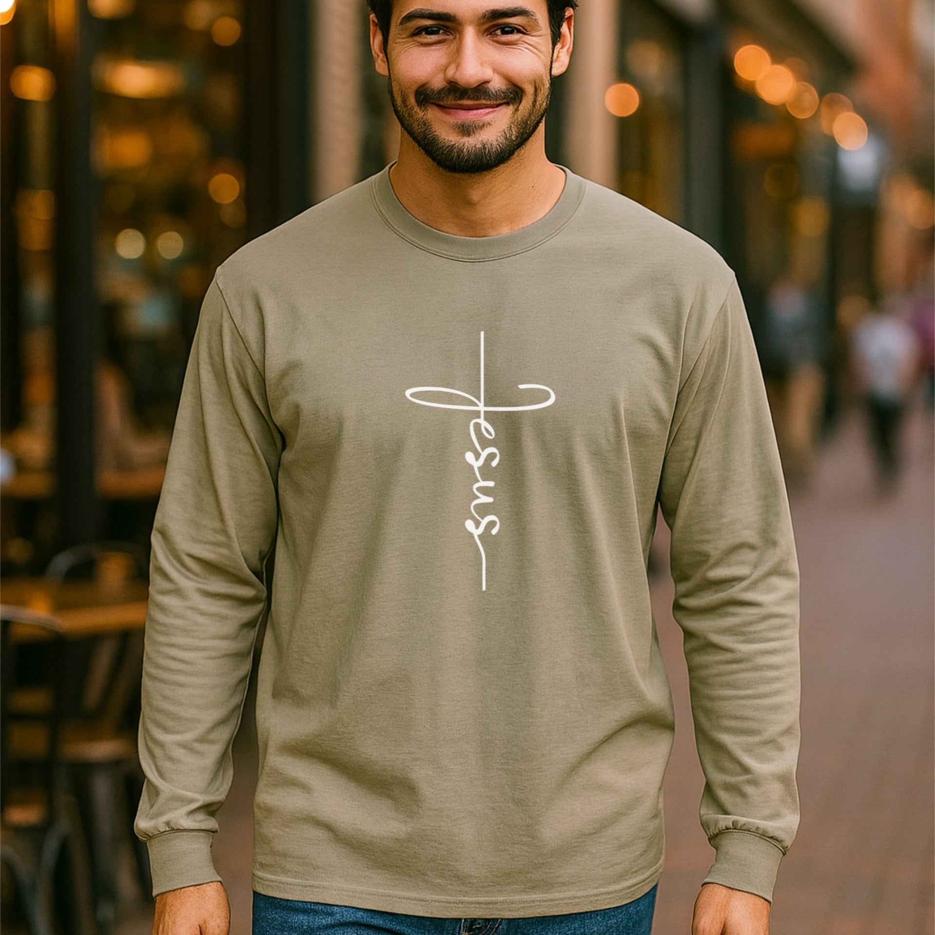 Wear Your Faith Boldly with this soft and durable long sleeve T-shirt, made from 100% ring-spun cotton. This heavyweight, garment-dyed long sleeve T-shirt, has a vintage, lived-in feel that gets better with time. Perfect for church, Bible study, or casual wear, this Christian long sleeve shirt lets you share your faith in comfort and style.