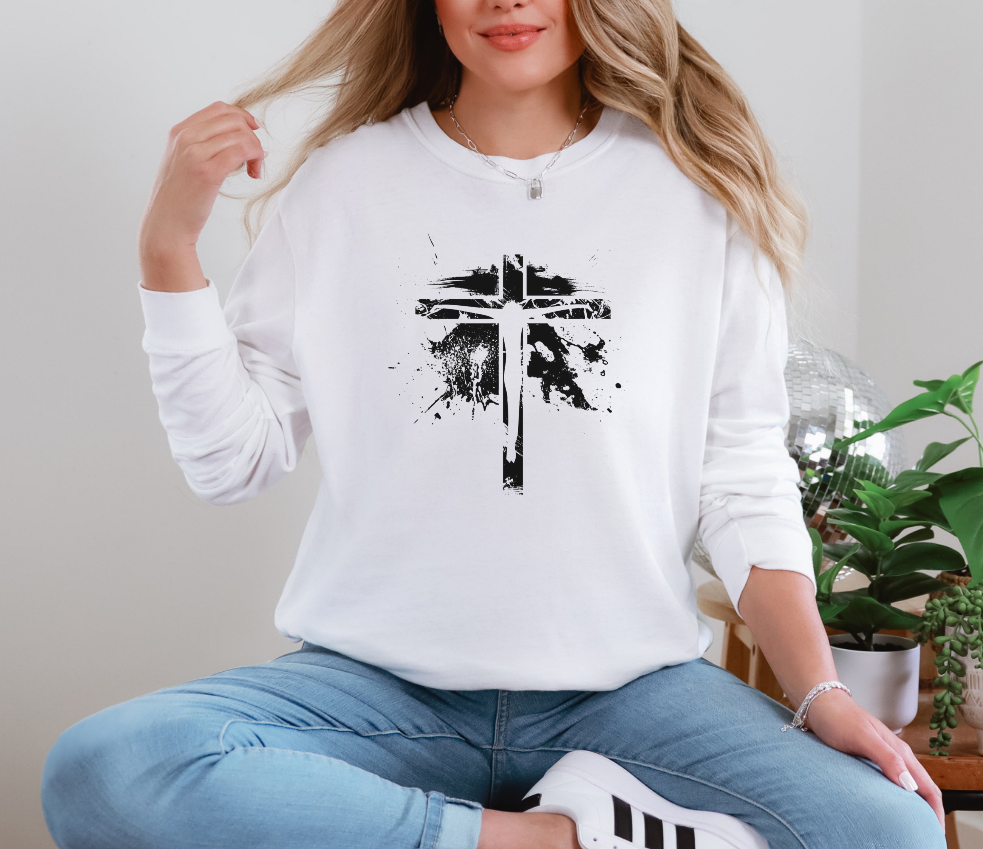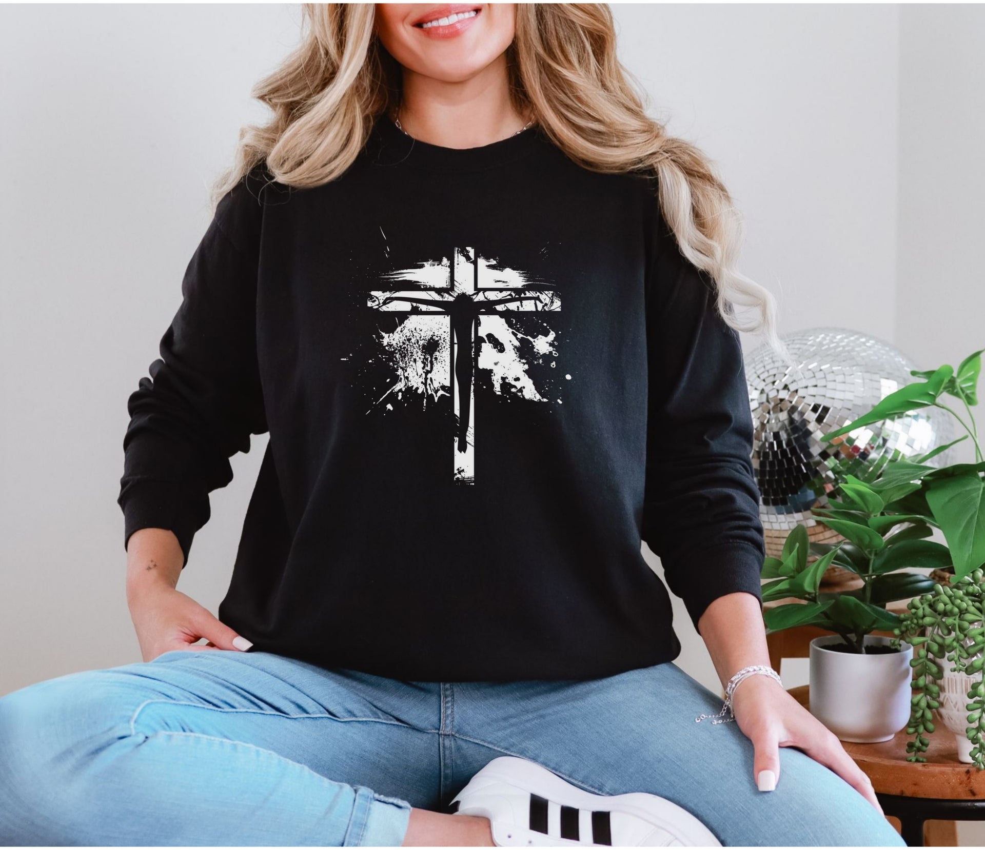 This "Jesus On Cross" Long Sleeve T-Shirt offers a relaxed fit and a meaningful design perfect for those seeking spiritual connection.