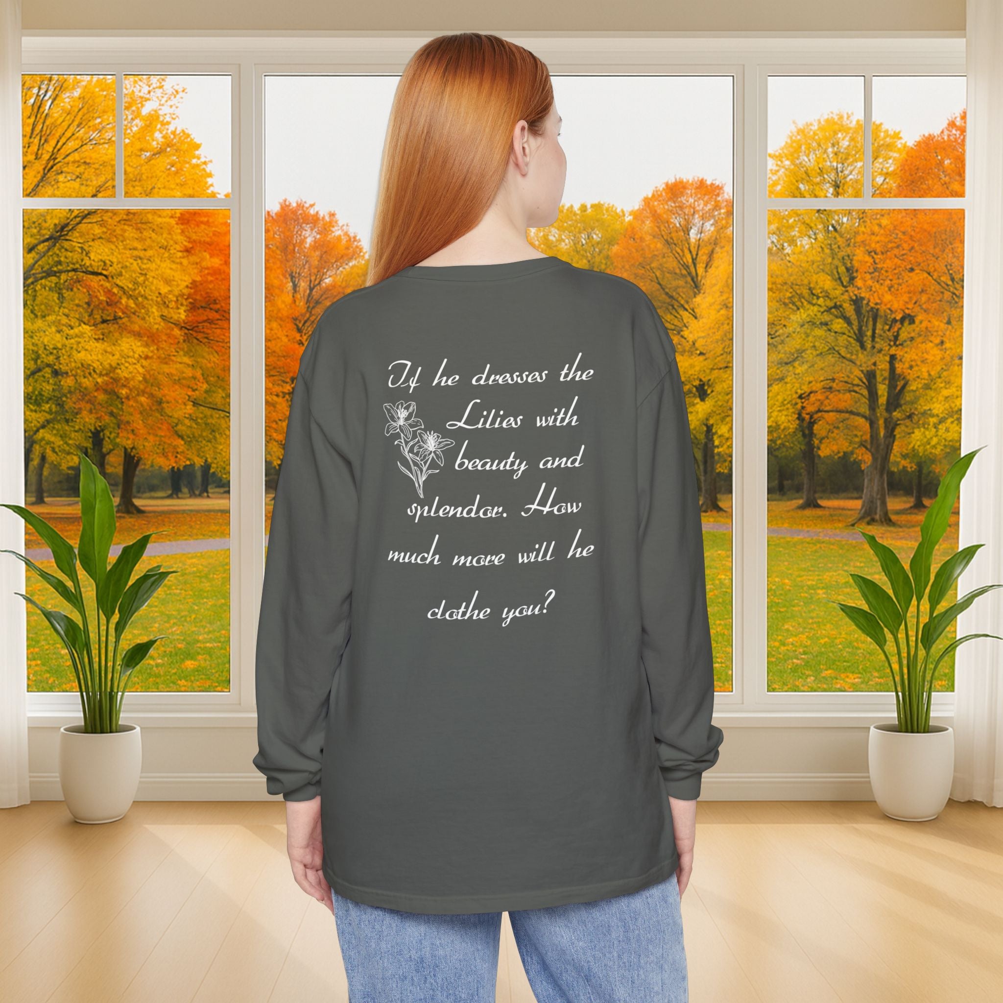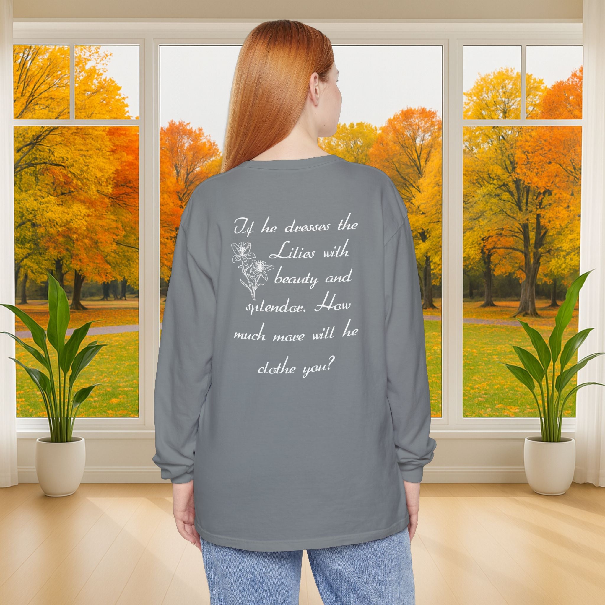 Wear Your Faith Boldly with this soft and durable long sleeve T-shirt, made from 100% ring-spun cotton. This heavyweight, garment-dyed long sleeve T-shirt, has a vintage, lived-in feel that gets better with time. Perfect for church, Bible study, or casual wear, this Christian long sleeve shirt lets you share your faith in comfort and style.