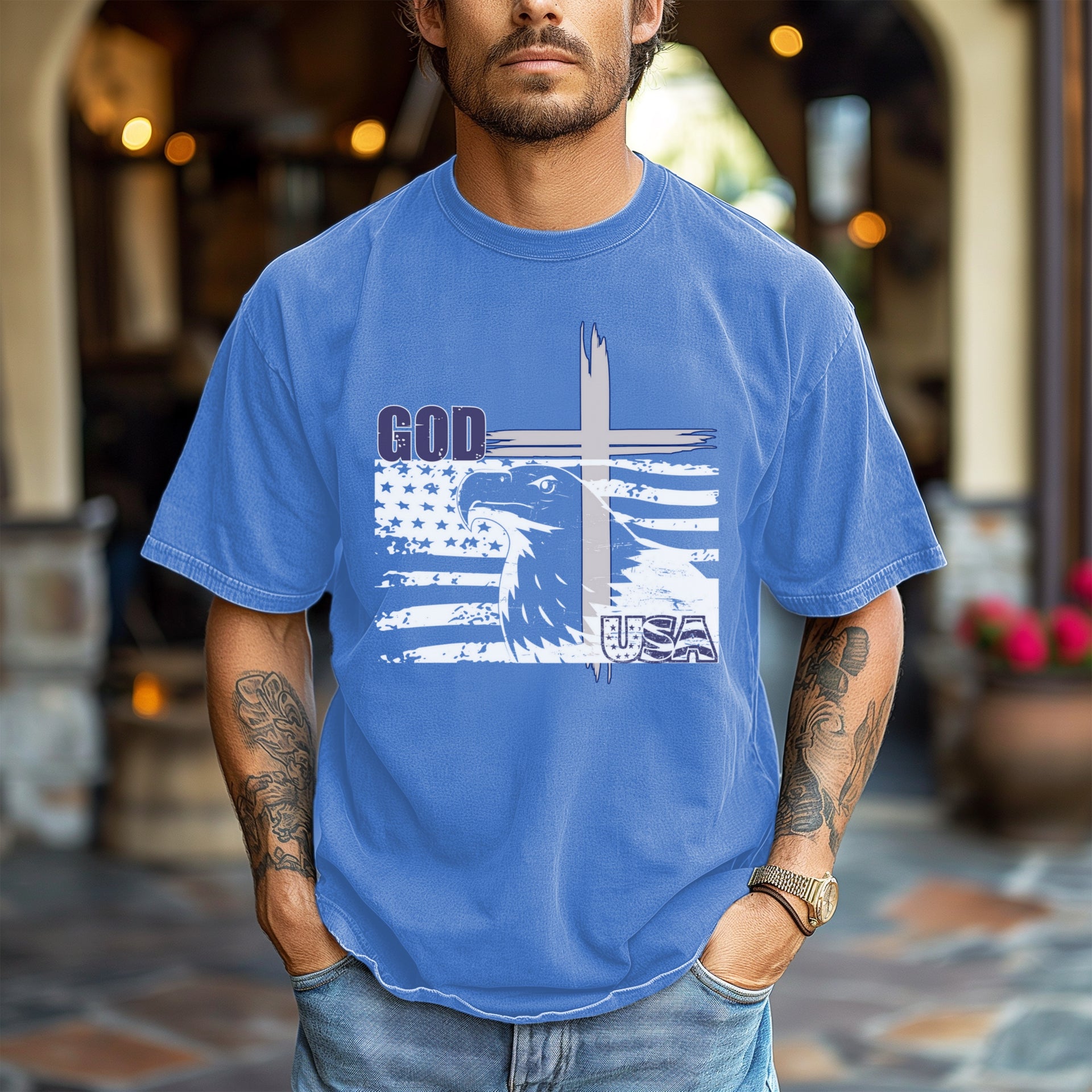 This God + USA Unisex Garment Dyed T-shirt is perfect for those looking for Christian-inspired apparel.