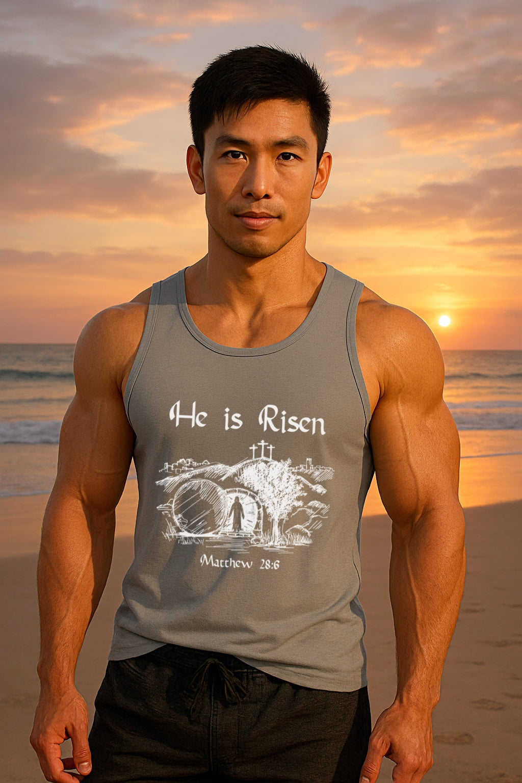Our He Is Risen Unisex Relaxed Fit Tank Top is a powerful reminder of the hope and life we have through Jesus Christ. Perfect for Easter season or year-round wear, this design boldly declares the truth of the Gospel in a clean, stylish way.