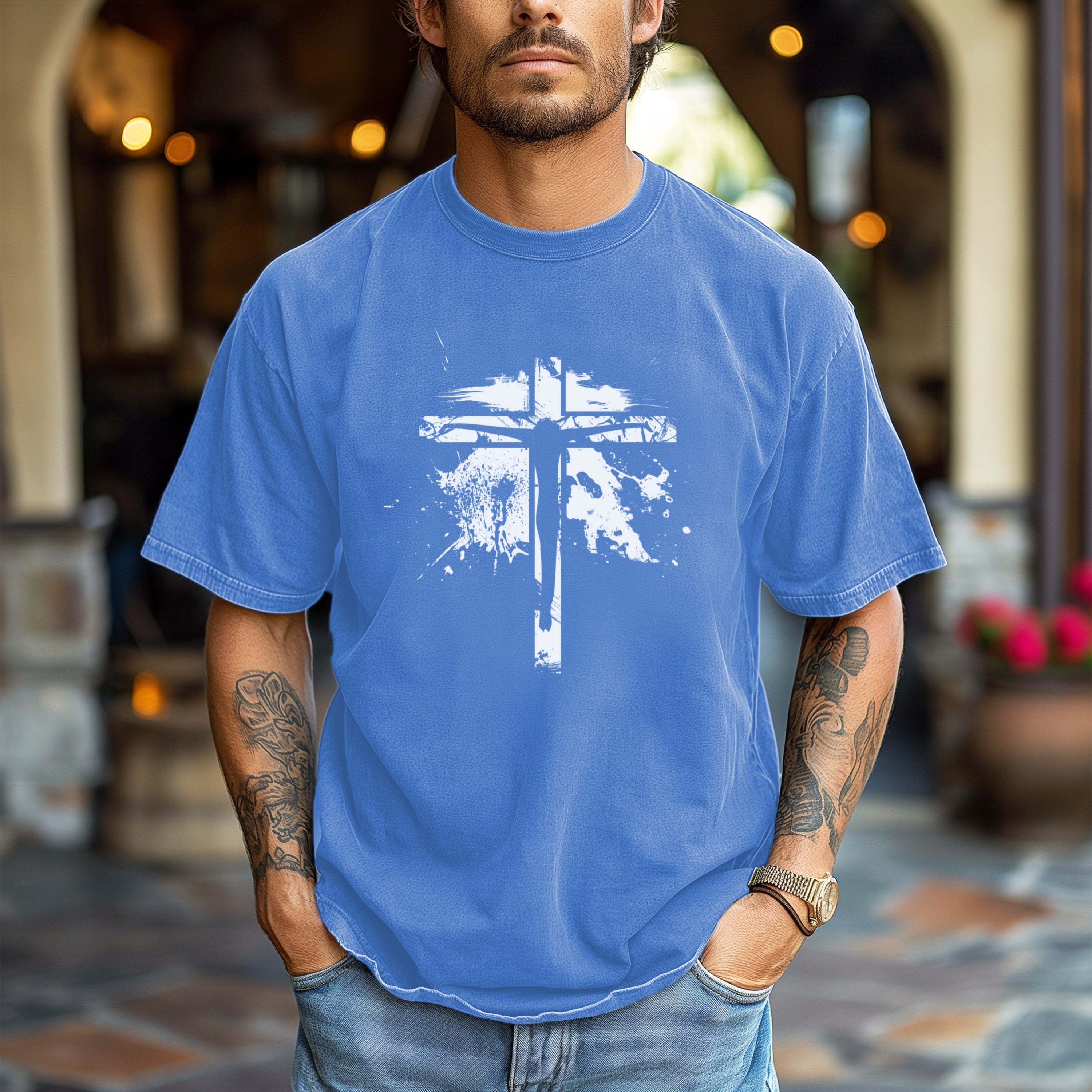 Orur faith-inspired Jesus On Cross Unisex Garment-Dyed T-Shirt blends everyday style with meaningful expression.