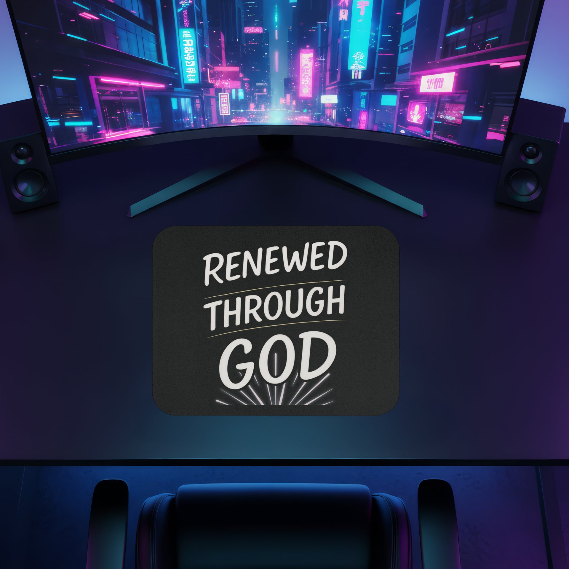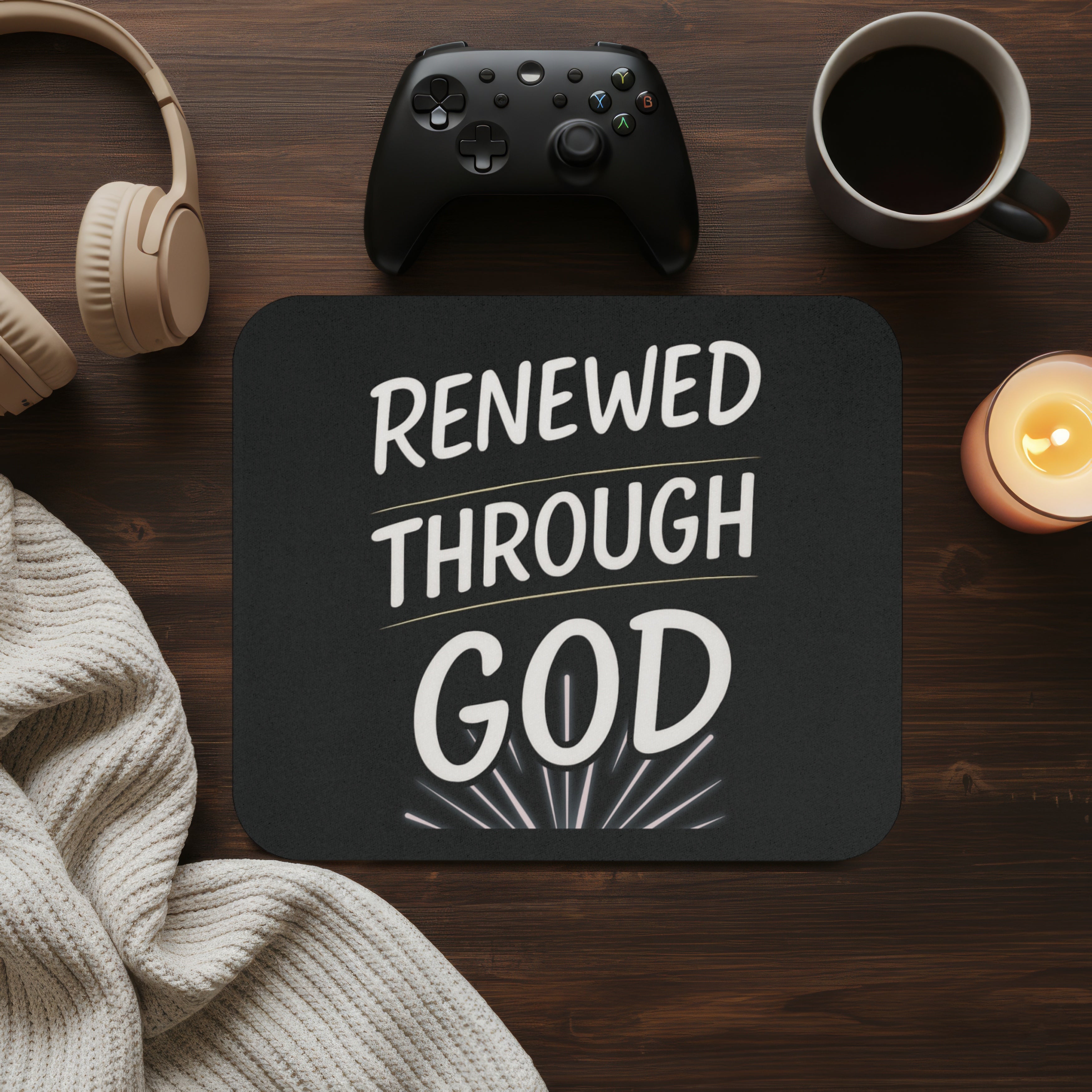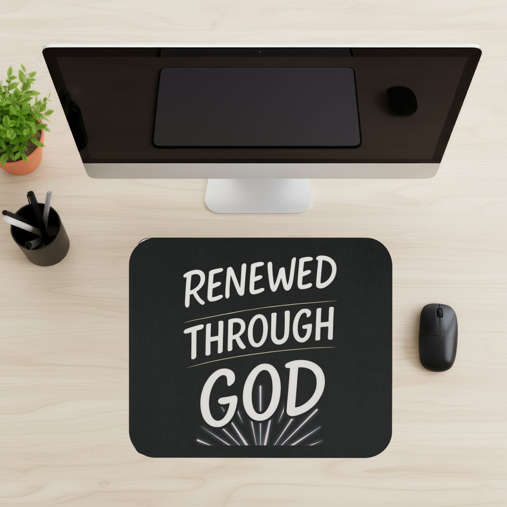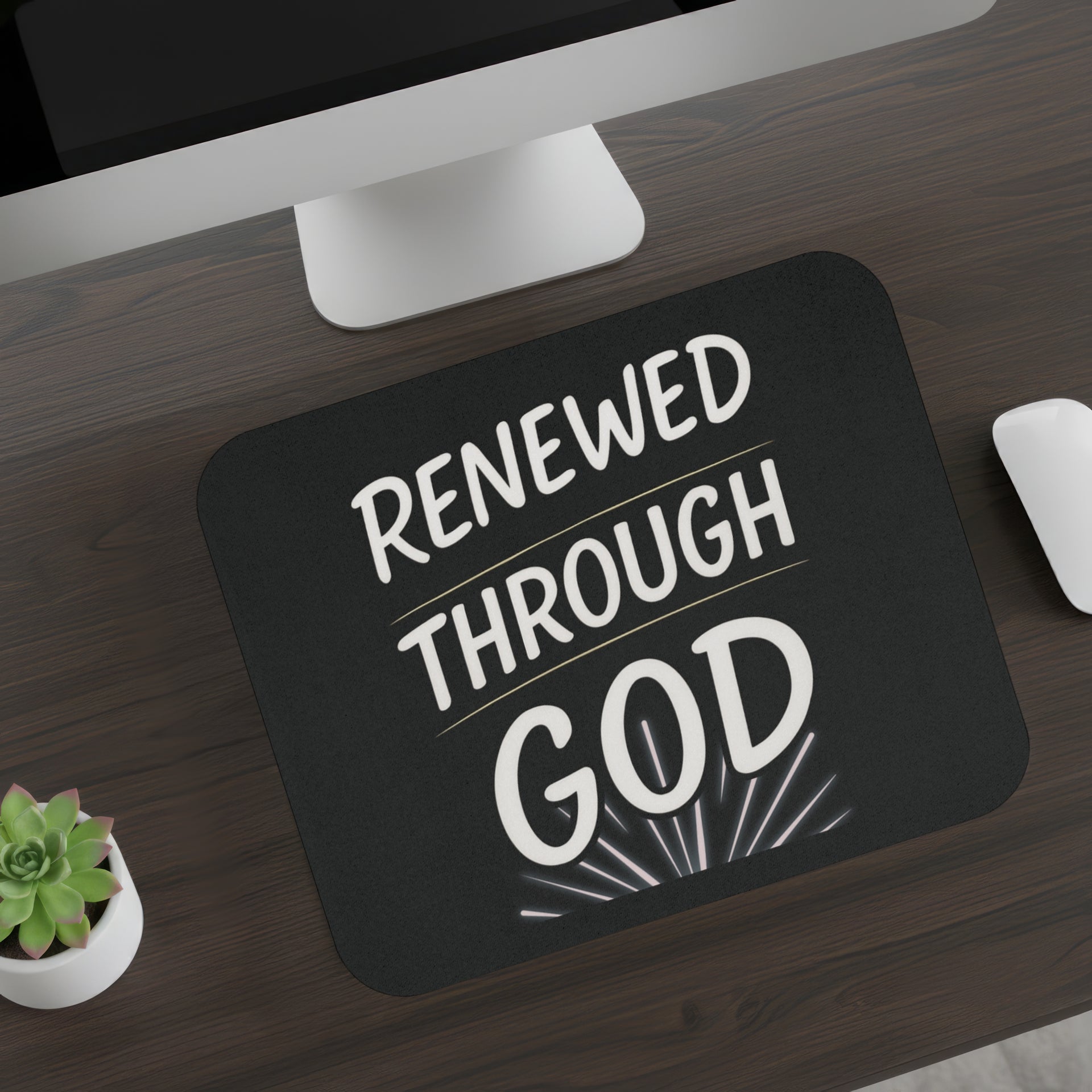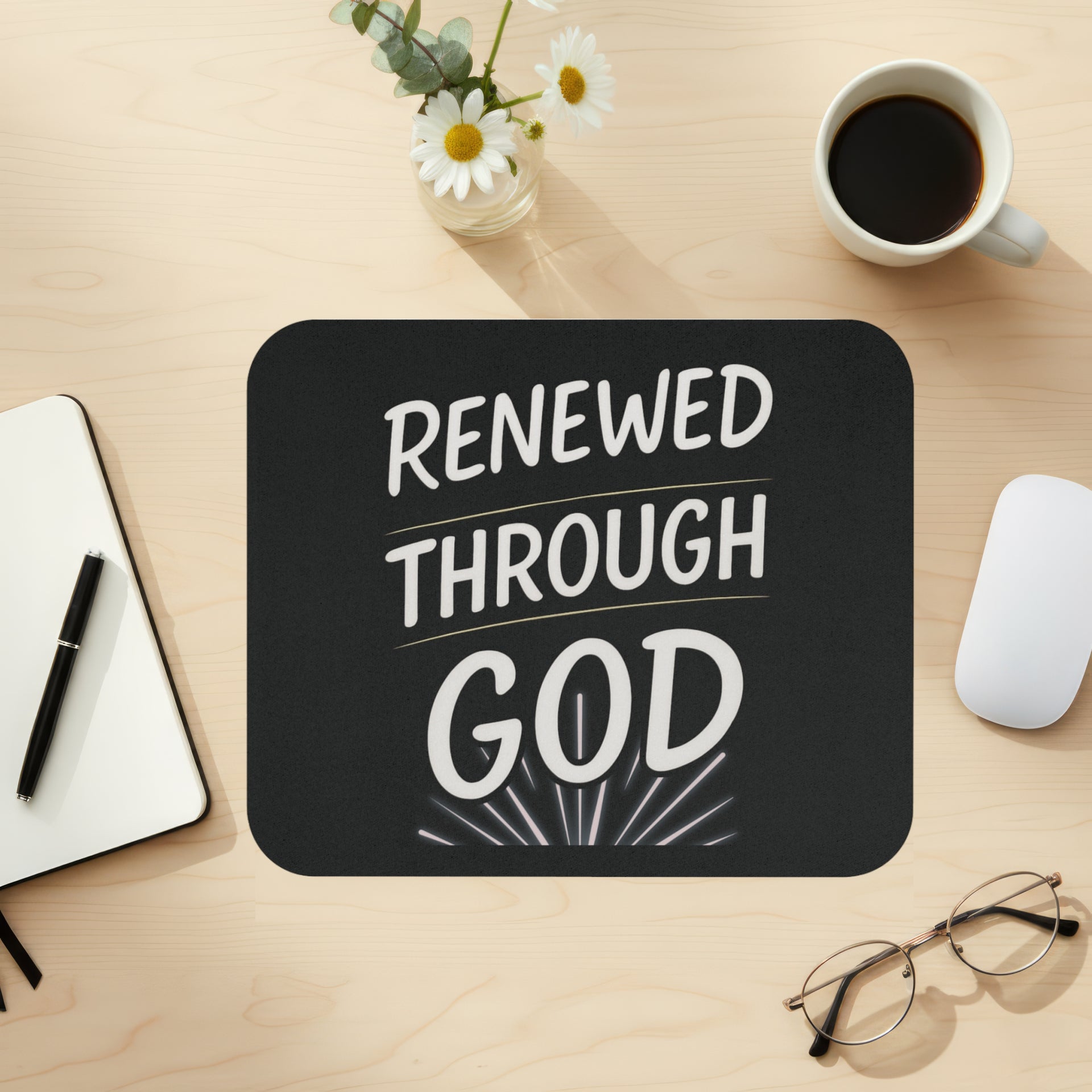 Renewed Through God Inspirational Mouse Pad – Christian Desk Accessory, Faith-Based Office Décor, Encouraging Gift