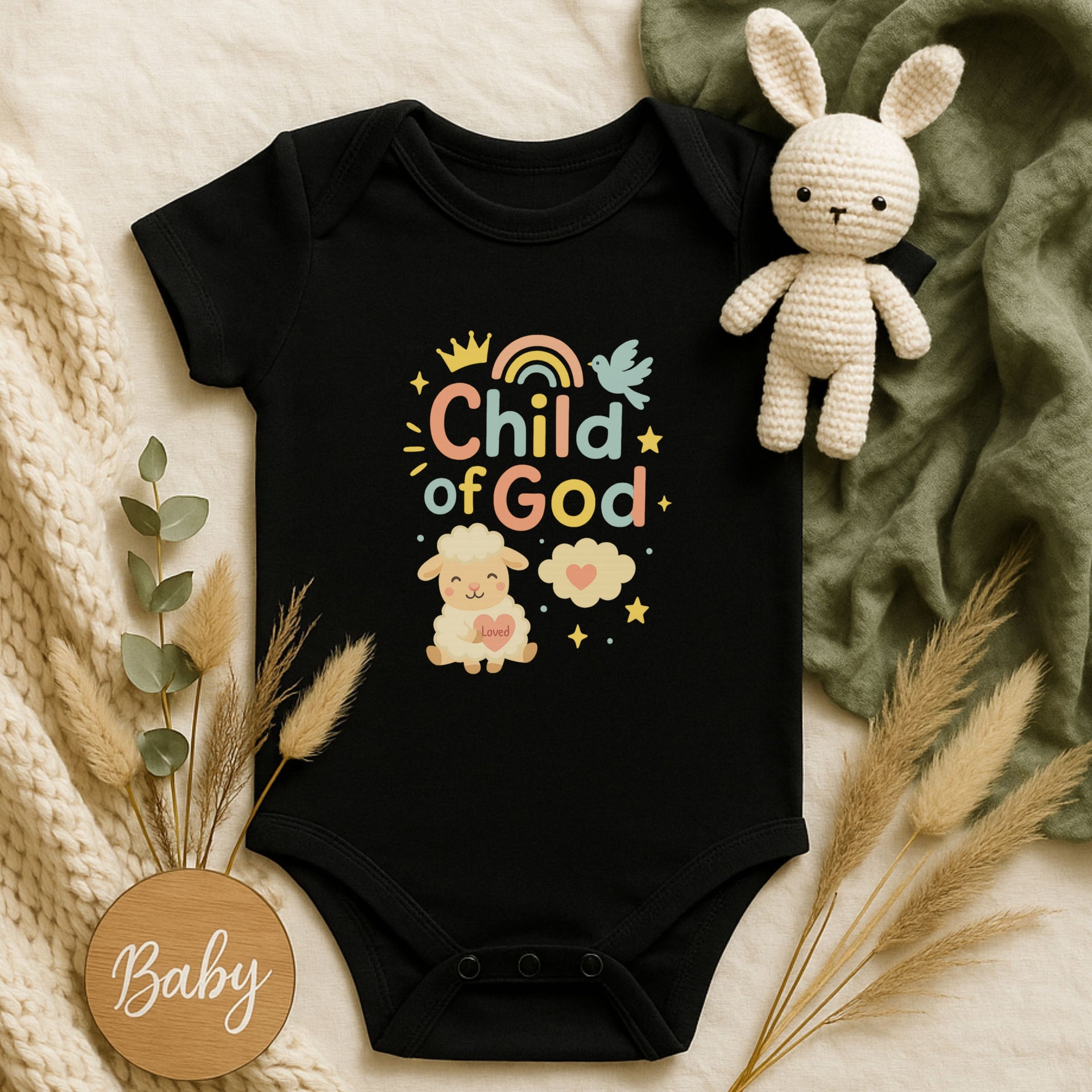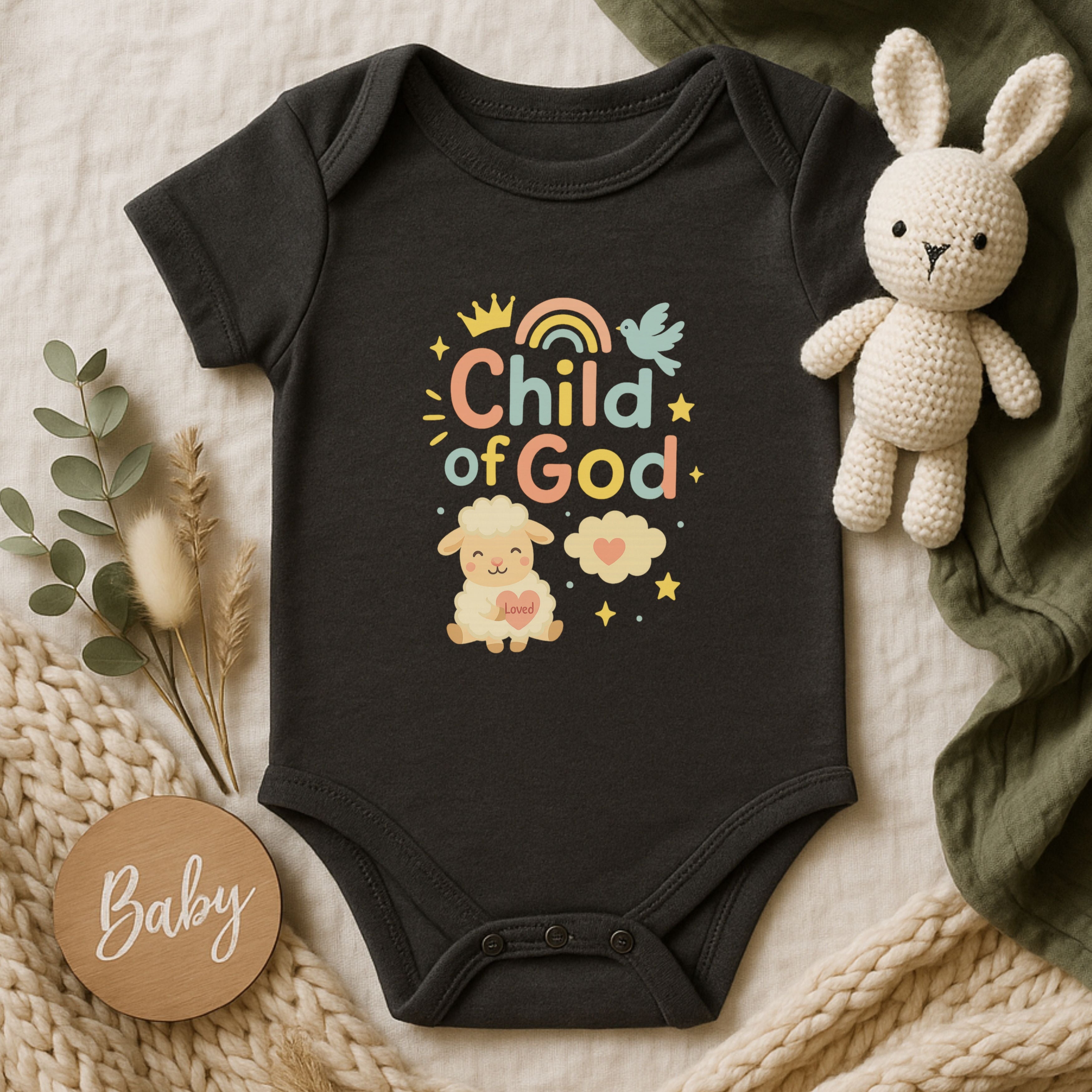 Celebrate your little blessing with the “Child of God” Infant Onesie.