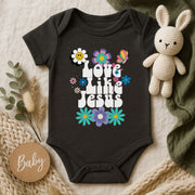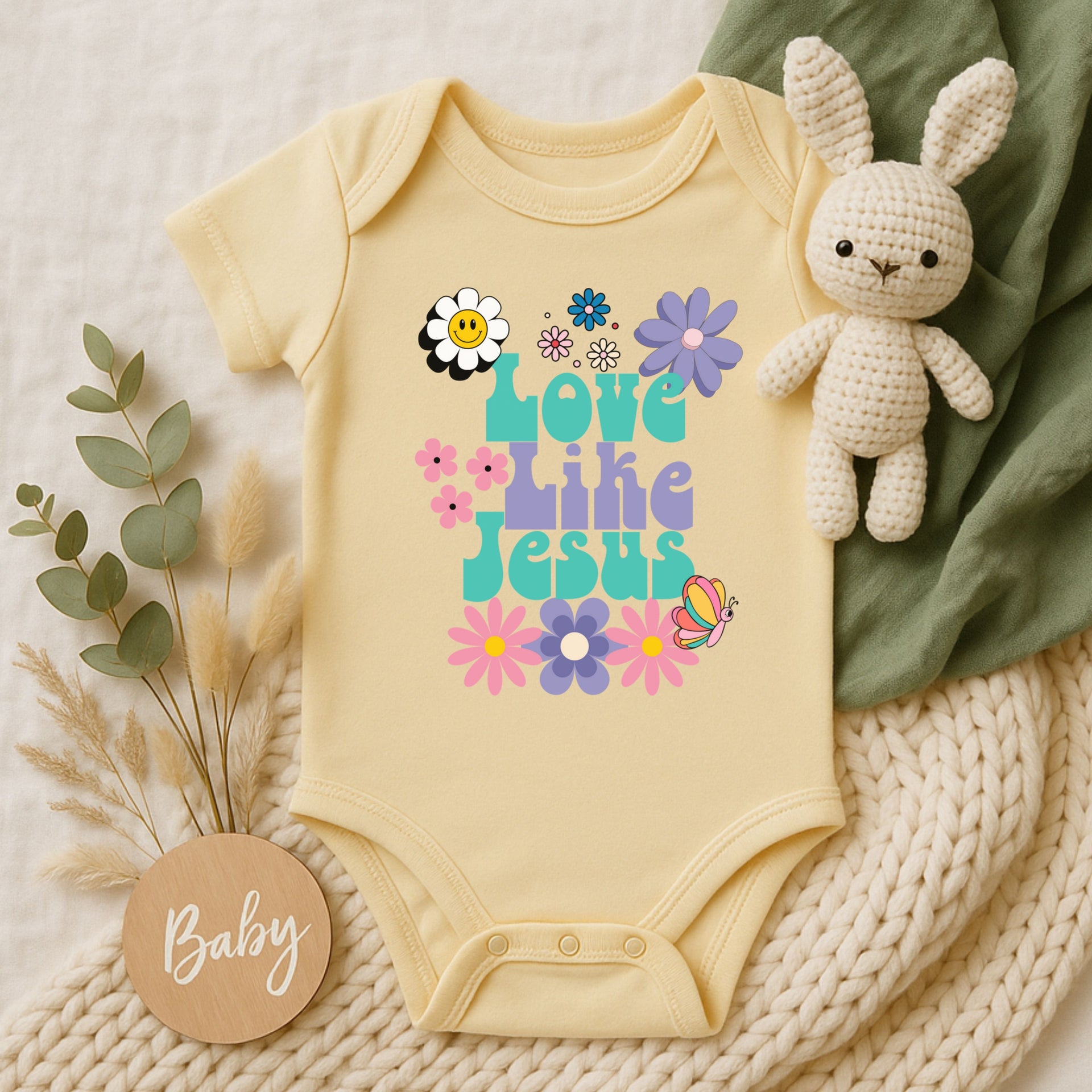 Dress your little blessing in comfort and faith with the "Love Like Jesus" Rabbit Skins 4424 Infant Short Sleeve Onesie from MyFaithMyFather . Crafted from soft, breathable cotton, this onesie is perfect for delicate skin — keeping your baby cozy while sharing a message of love and hope. Designed for both comfort and convenience, it features reinforced snap closures for easy changes and a durable, faith-inspired print that lasts through every giggle, nap, and cuddle. Ideal for church, family photos, or everyday wear, this Christian baby bodysuit is a heartfelt gift for any new parent.