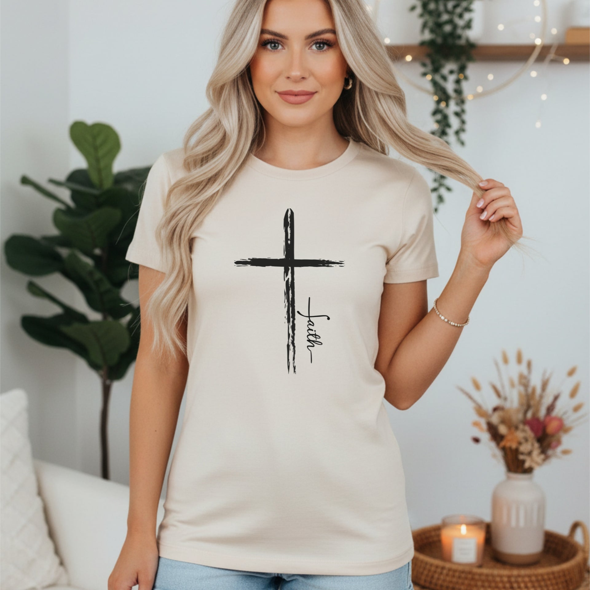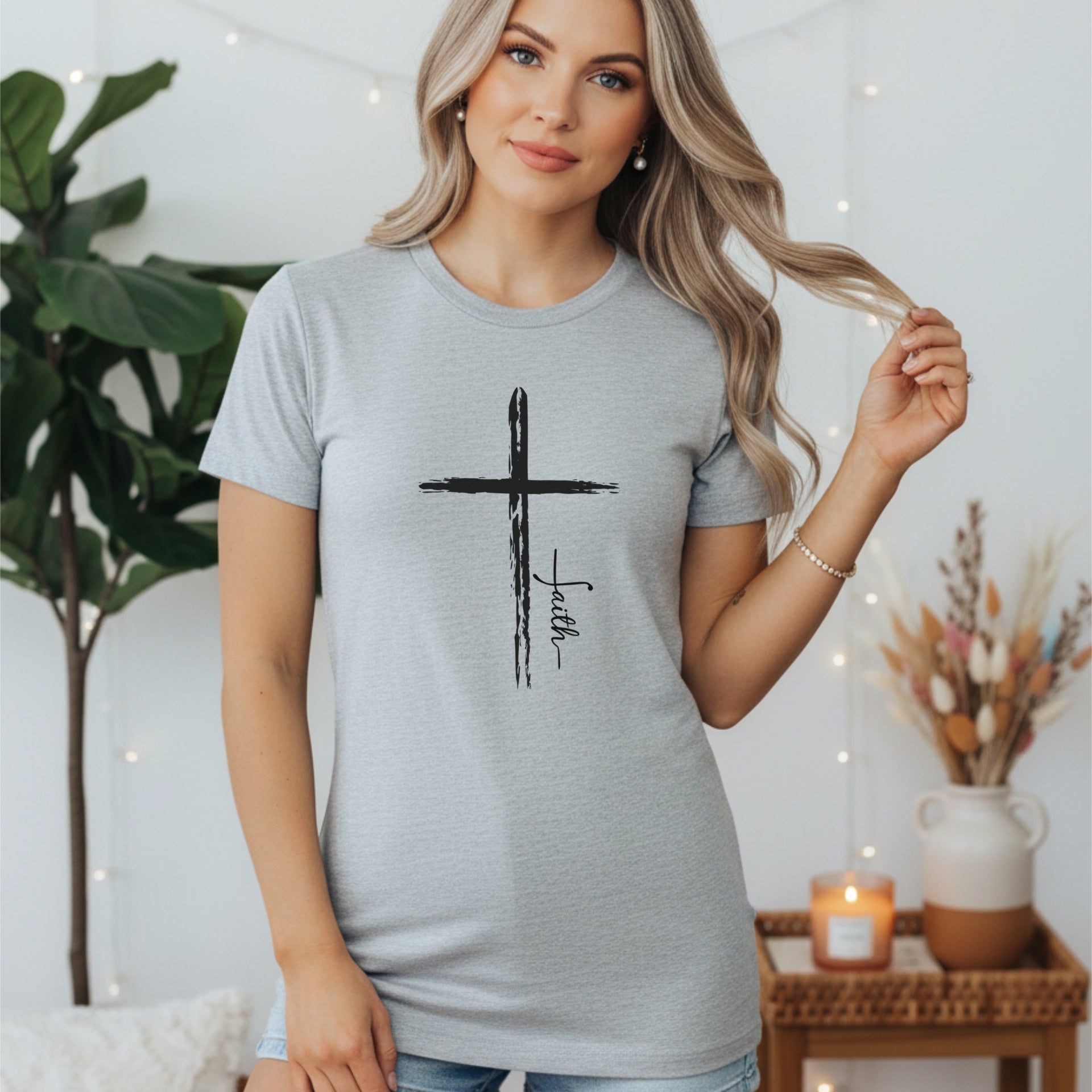 The Cross With Faith Women’s Favorite Tee blends two of the most powerful symbols of the Christian life—the Cross of Christ and the word Faith. It’s a simple yet bold way to express your belief and share the hope you have in Him.