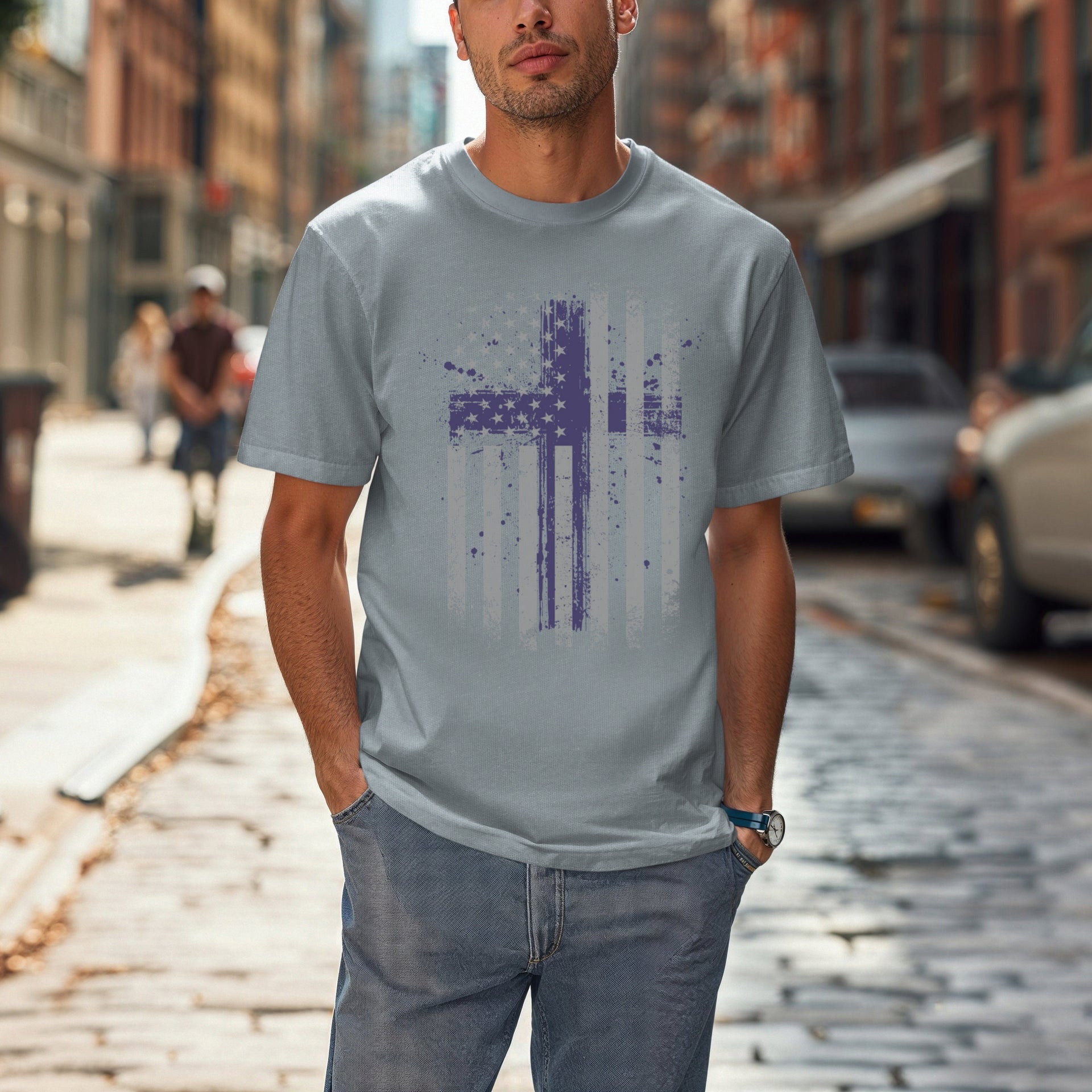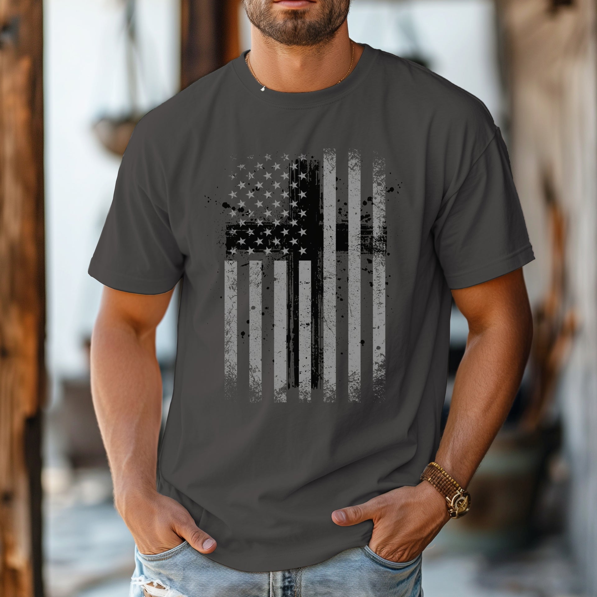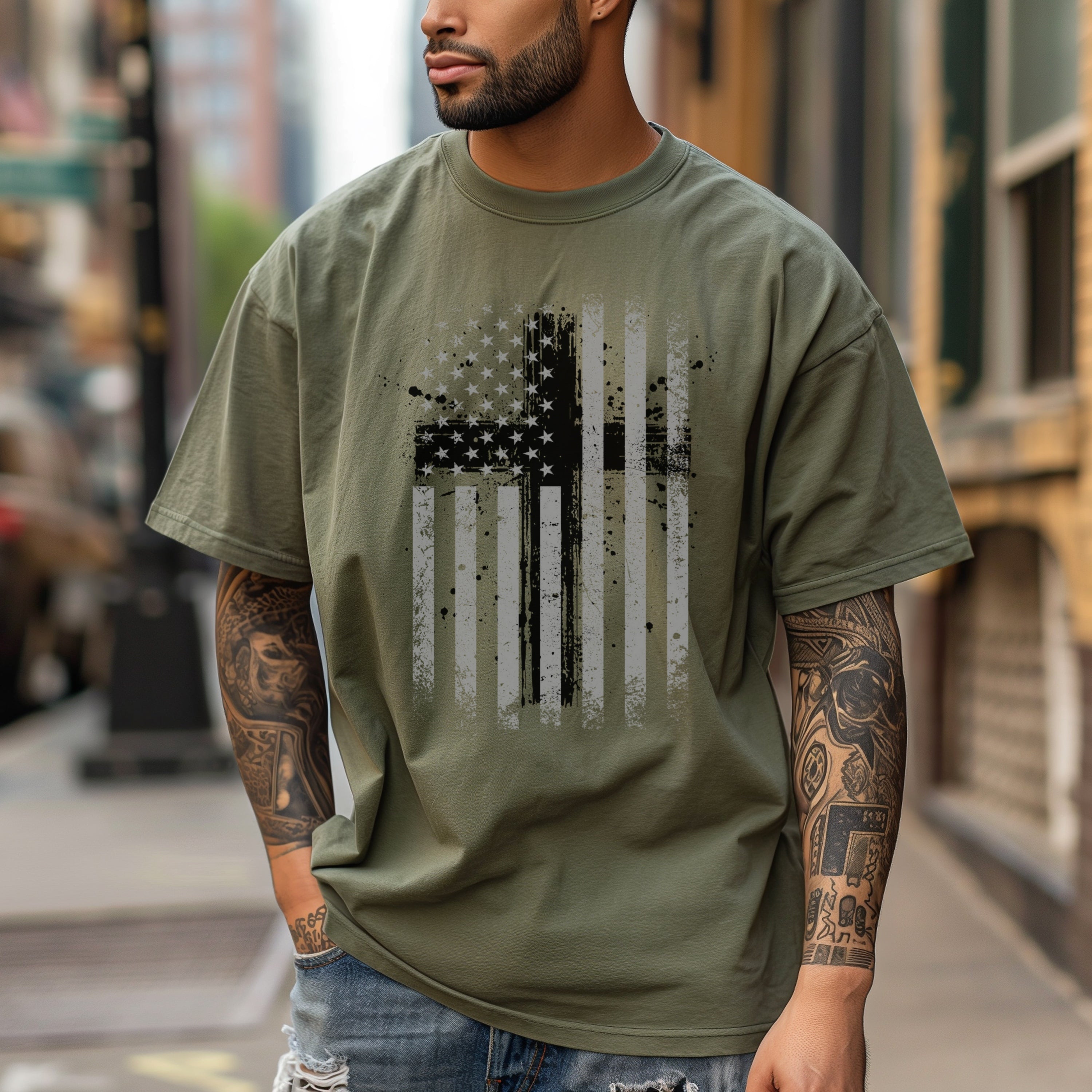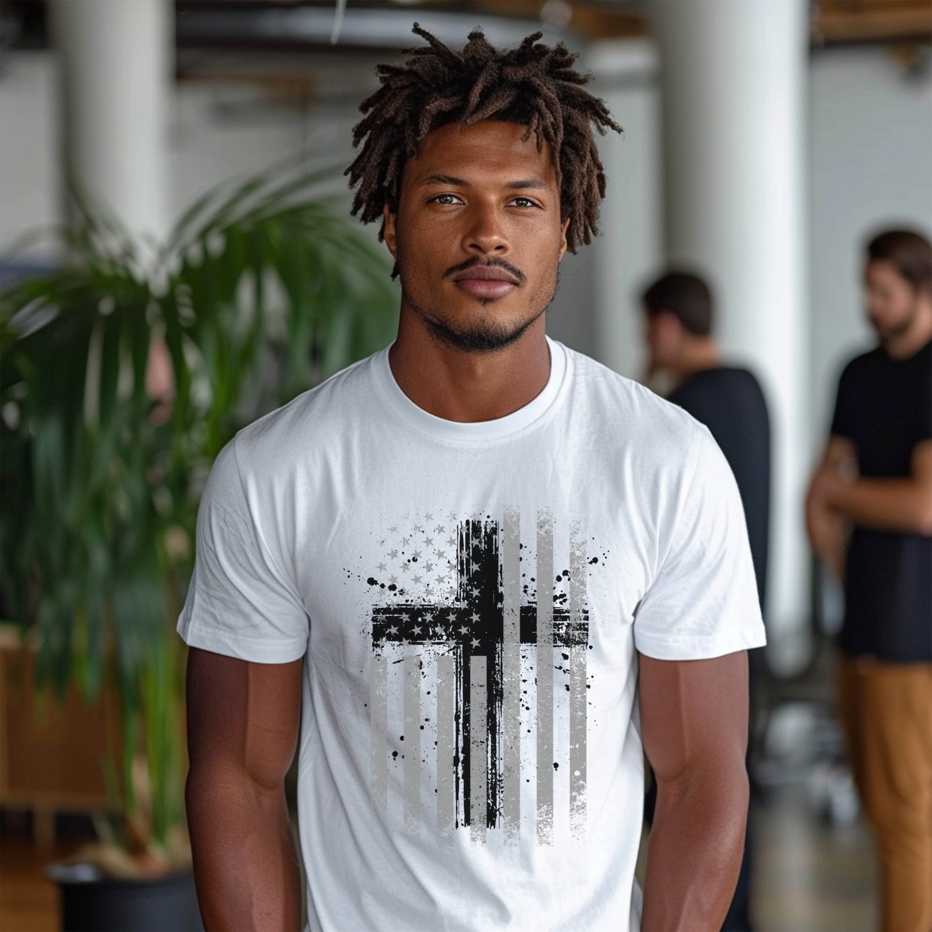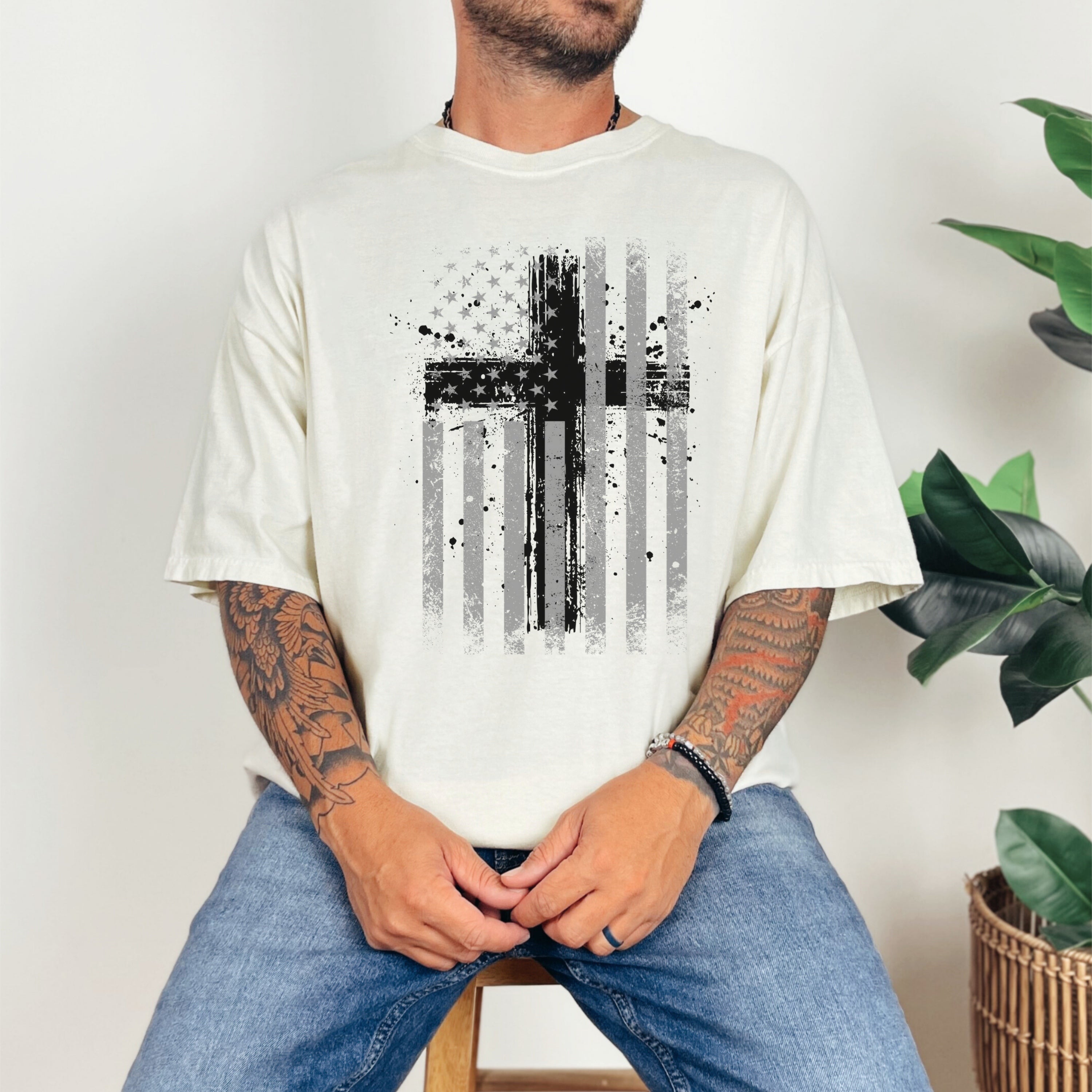 Show your faith with this Flag With Cross design Unisex Relaxed Fit T-shirt. T