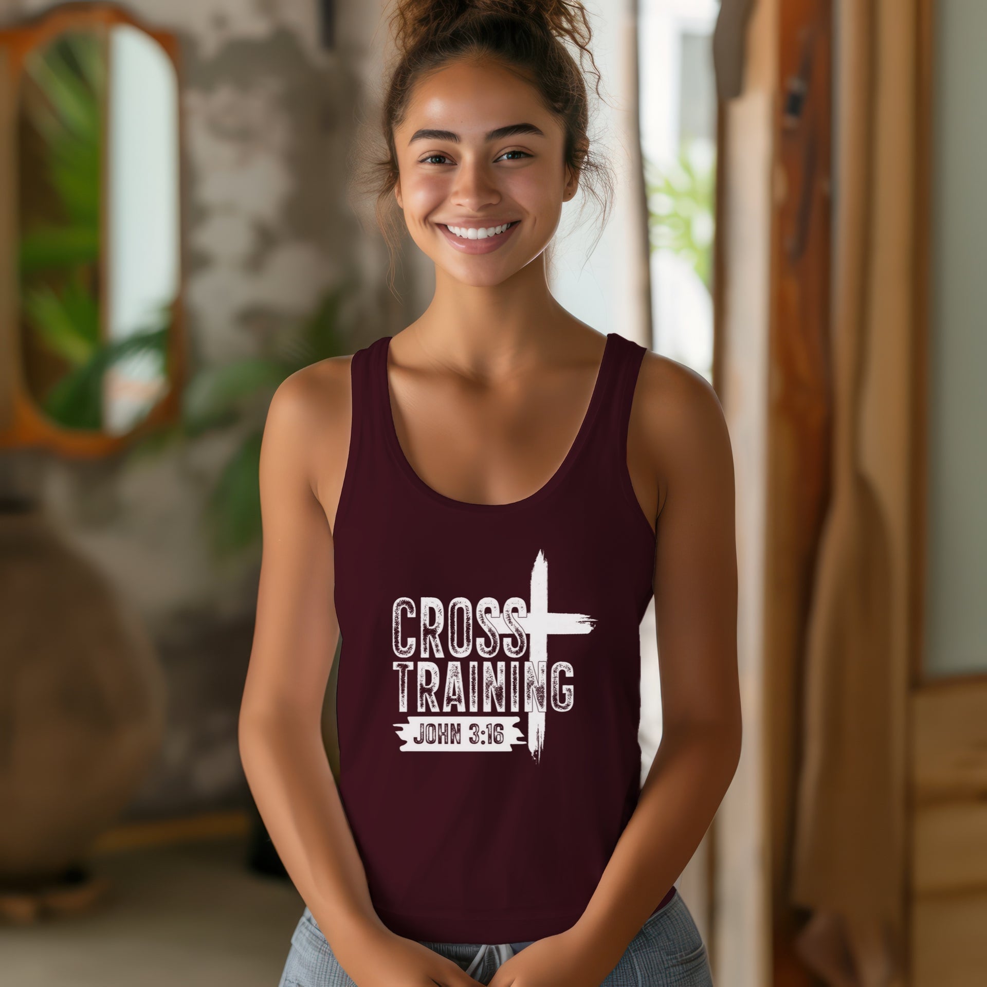 This Cross Training Women's Flowy Racerback Tank Top is a faith-based tank that offers a relaxed fit and extra light fabric, perfect for workouts or casual wear. The self fabric binding with overlock and overlock side seams provide structural support and durability. Ideal for women looking for a comfortable and stylish tank for their active lifestyle or spiritual practice. Relevant for gym-goers, yoga enthusiasts, and those who prioritize faith in their daily lives. Great for holidays, yoga retreats, or spiritual gatherings.