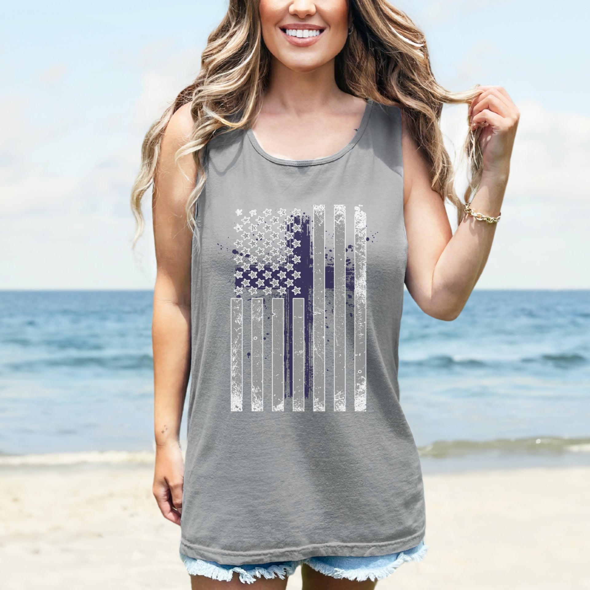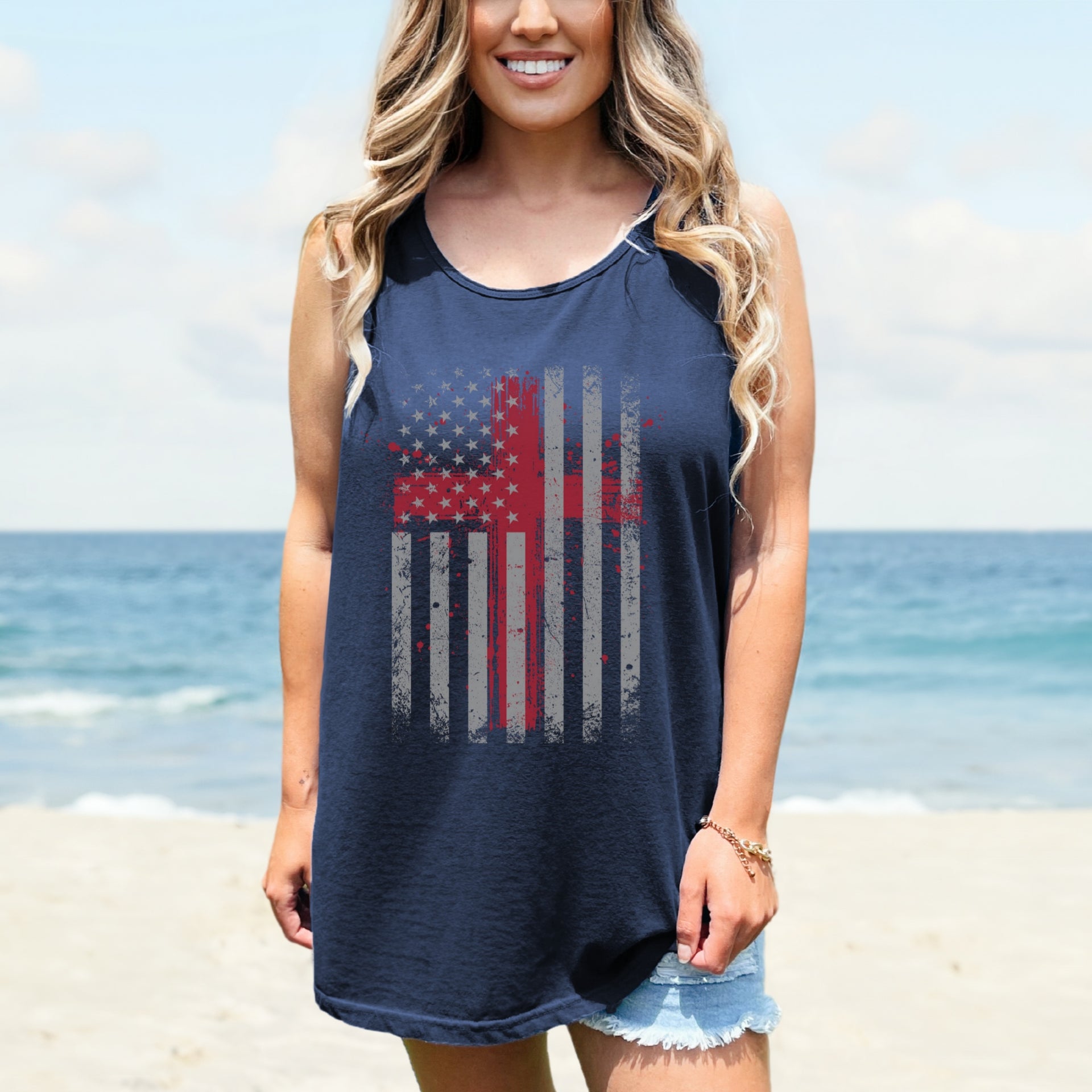 Crafted from a soft, breathable cotton-blend, this tank is cut in a relaxed fit for all-day comfort and ease of movement. Perfect for summer barbecues, patriotic celebrations, worship services, or casual wear, its timeless design is both stylish and meaningful.