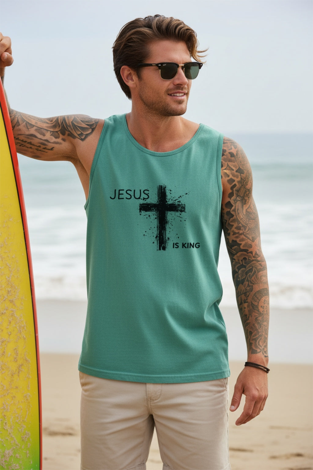 With its relaxed fit, soft cotton-blend fabric, and unisex cut, this tank is perfect for all-day comfort—whether you’re at church, enjoying a casual outing, working out, or serving in ministry. The message is bold and clear, making it not only a personal reminder but also a conversation starter about the Gospel.