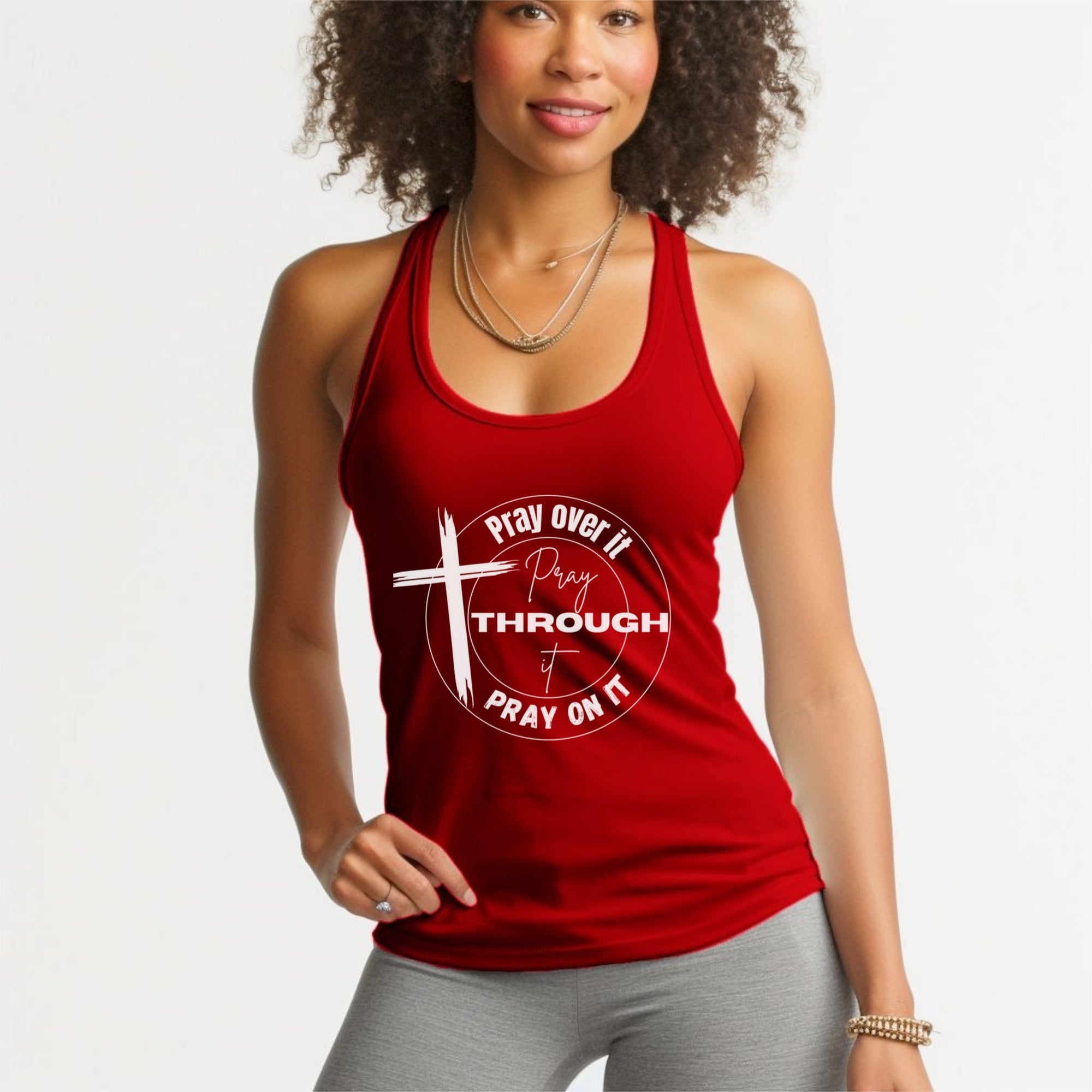 Crafted from a soft, breathable cotton-blend, this tank features a true-to-size fit that’s flattering for both men and women. It’s comfortable enough for workouts, summer days, ministry events, or casual outings, while the bold design serves as a conversation starter and encouragement for others to turn to God in all things.