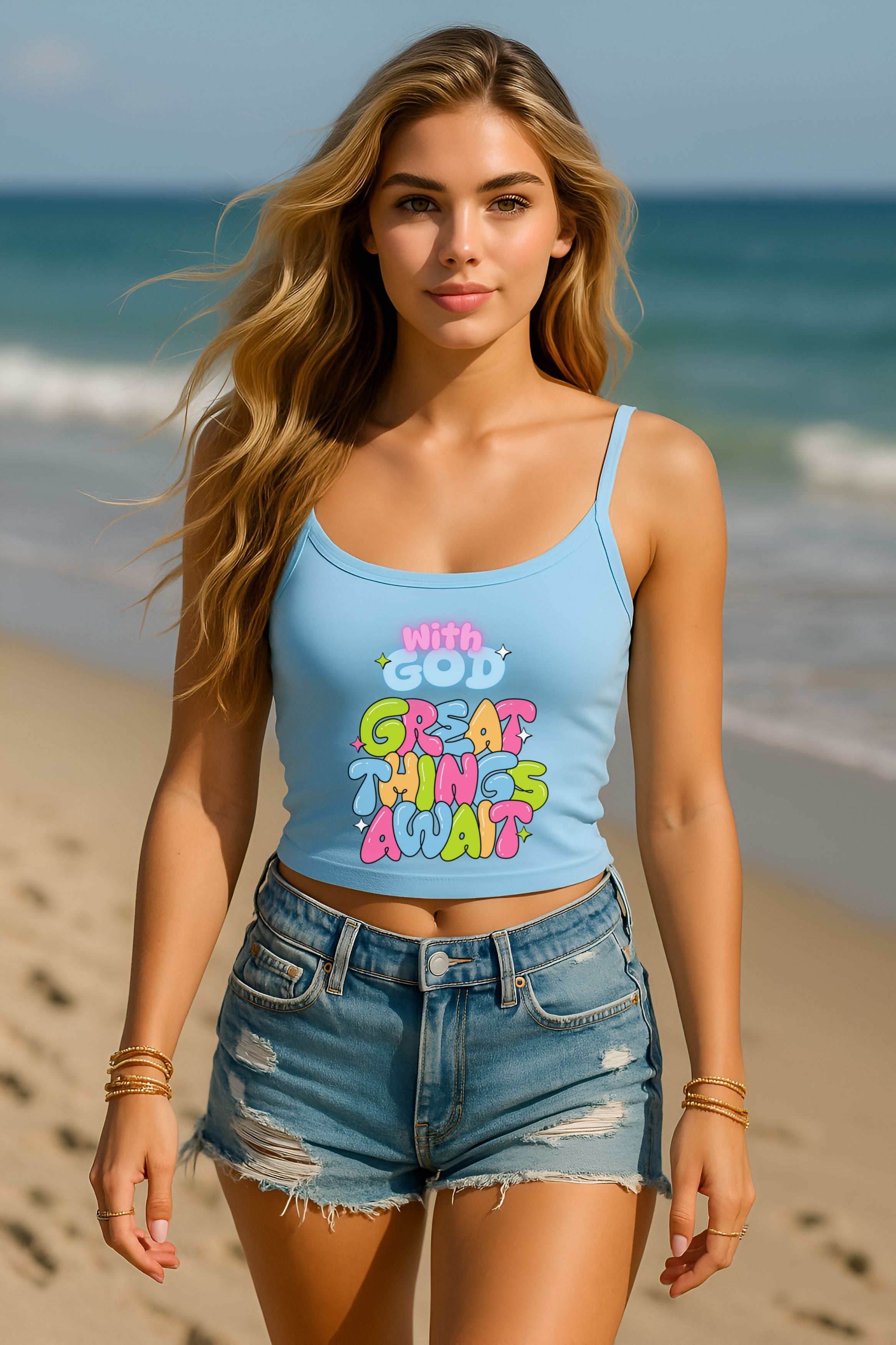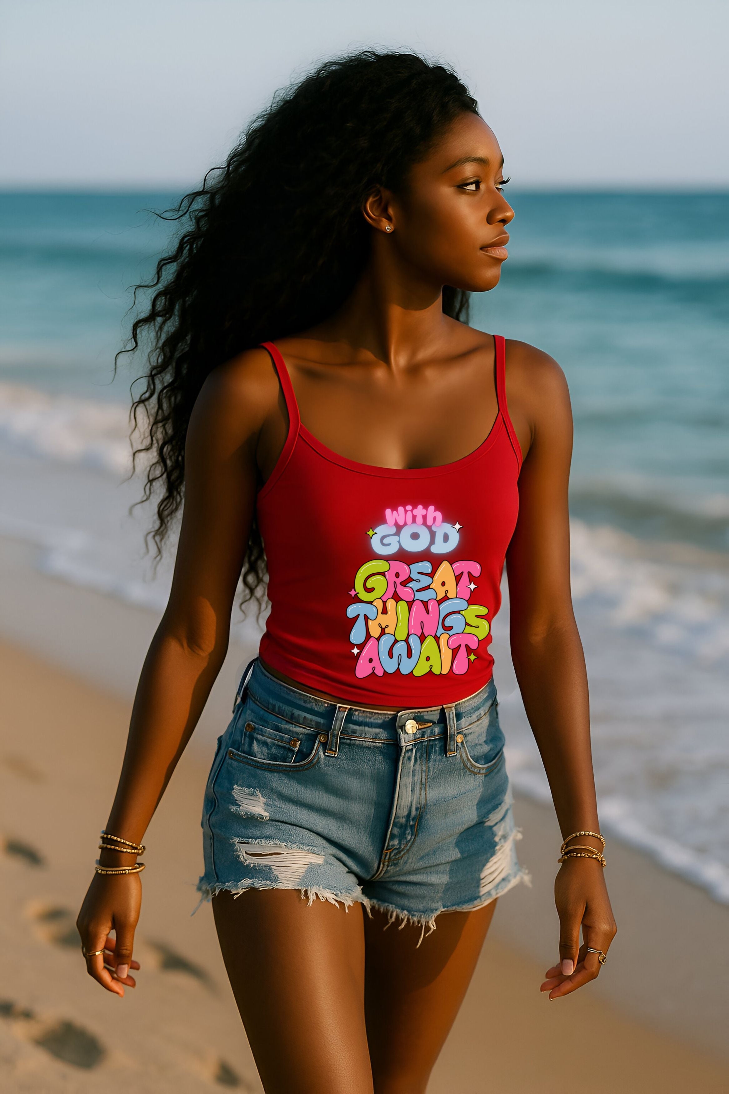 With God Great Things Await Women's Spaghetti Strap Tank Top