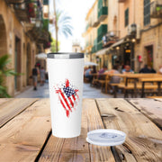 Flag Wrapped Cross Stainless Steel Tumbler, Patriotic Cup, 22oz Insulated Mug, Christian Coffee Travel Flask, Religious Gift