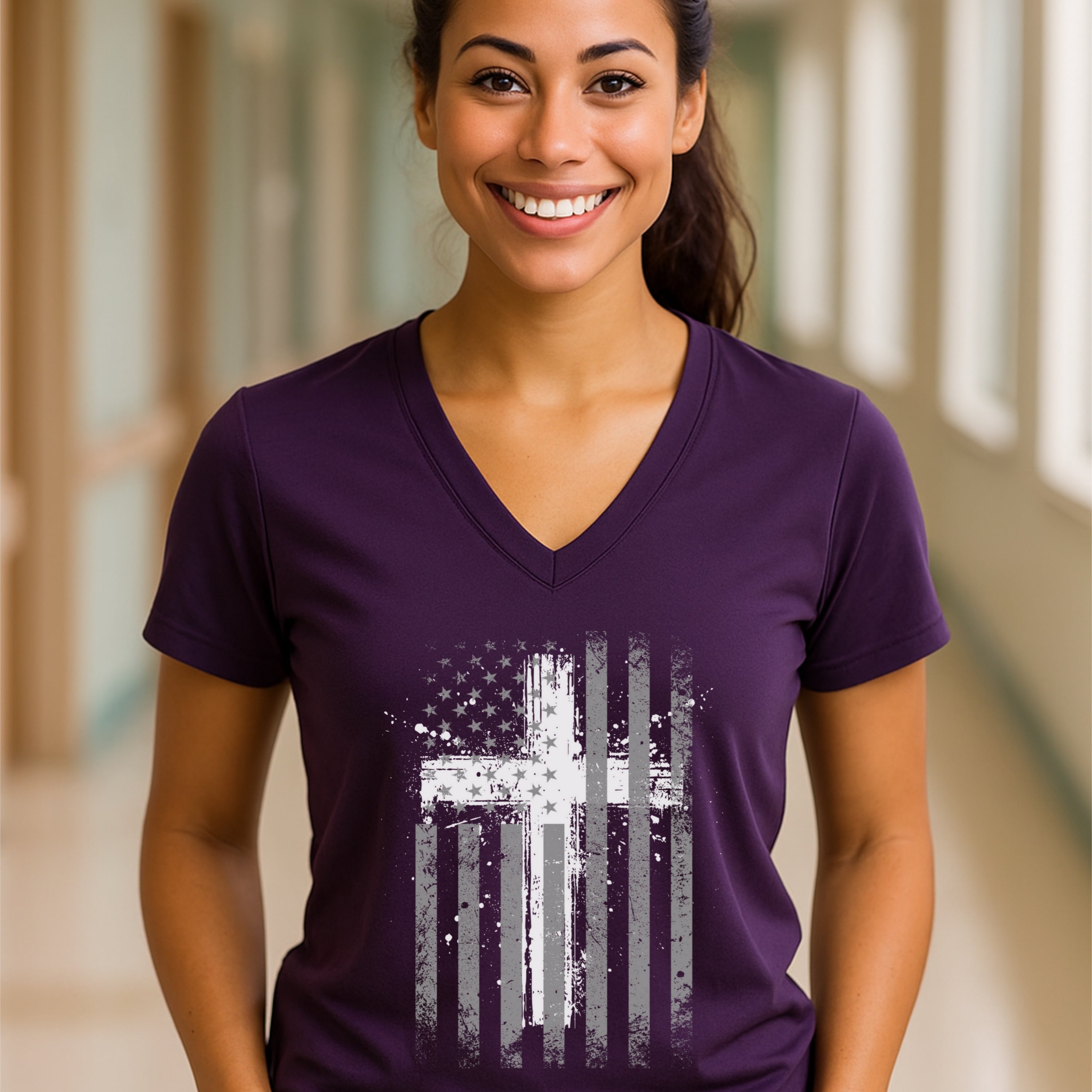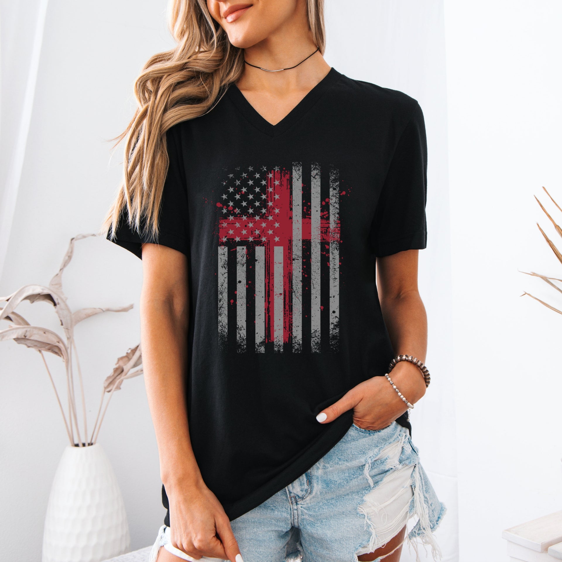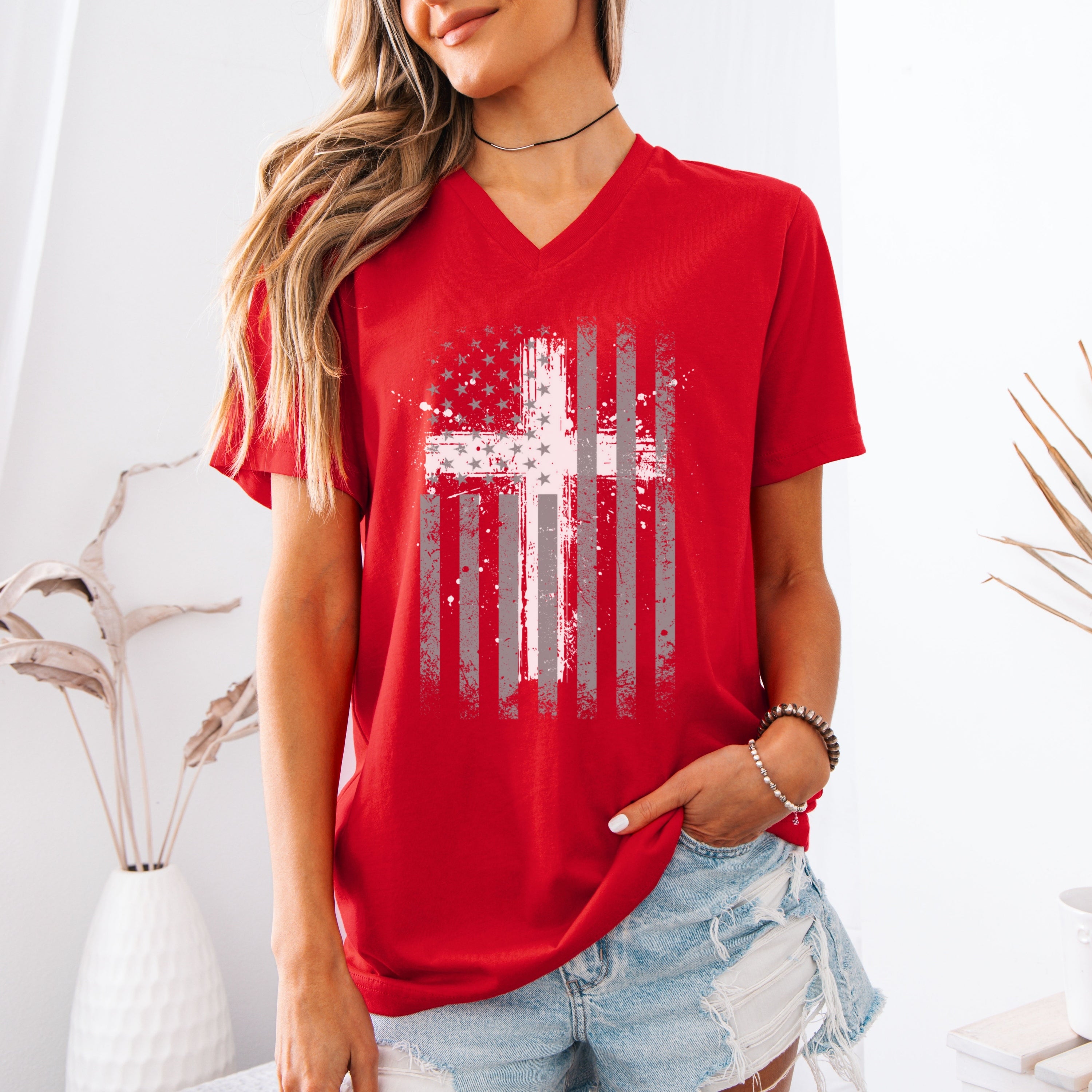 Show your love for God and country with our powerful “Flag with Cross” T-Shirt — a bold fusion of patriotism and faith. Featuring a striking American flag intertwined with the cross, this design represents the foundation of values, freedom, and eternal truth.