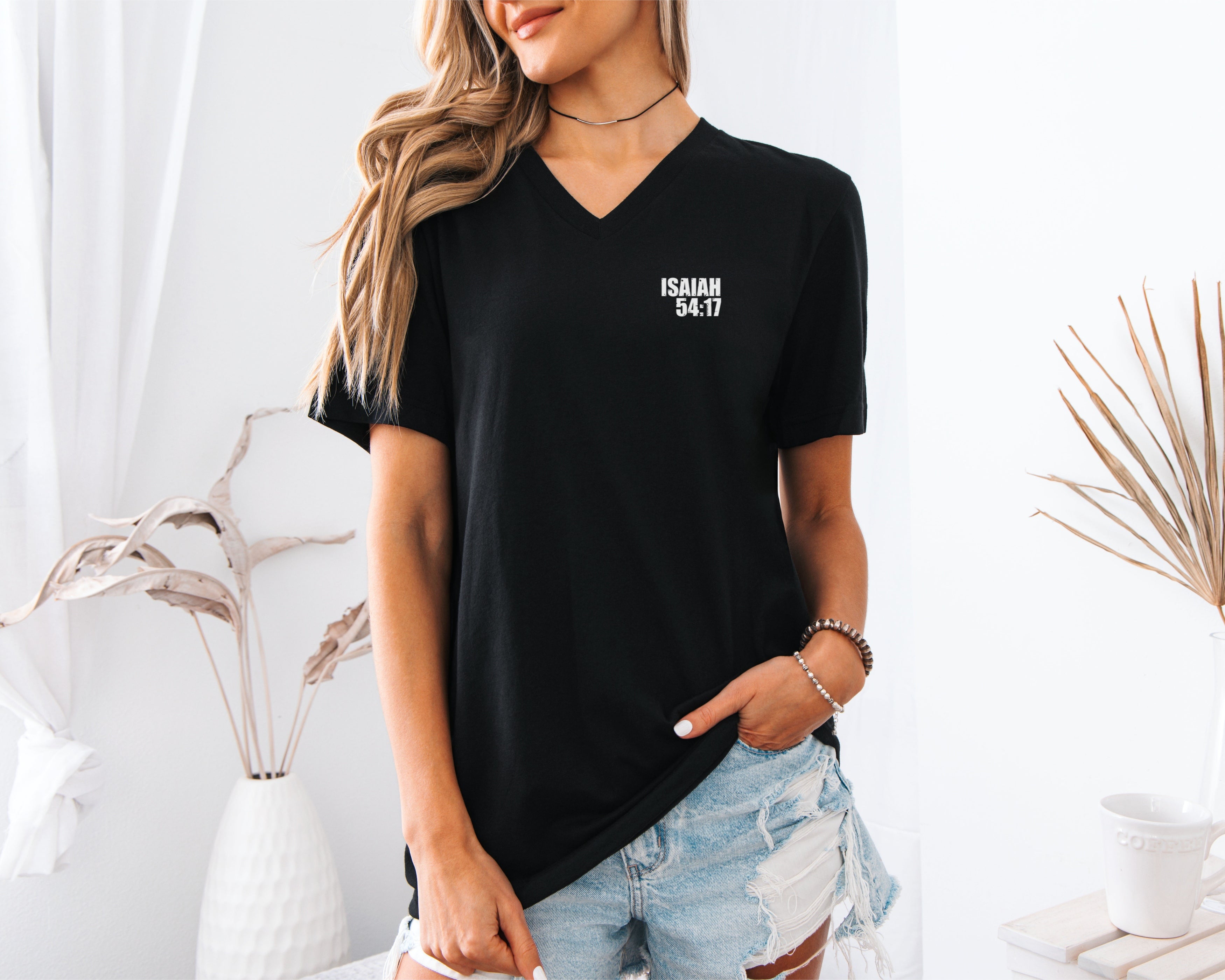 Isaiah 54:17 No Weapon Formed Against Me Unisex V-Neck T-Shirt