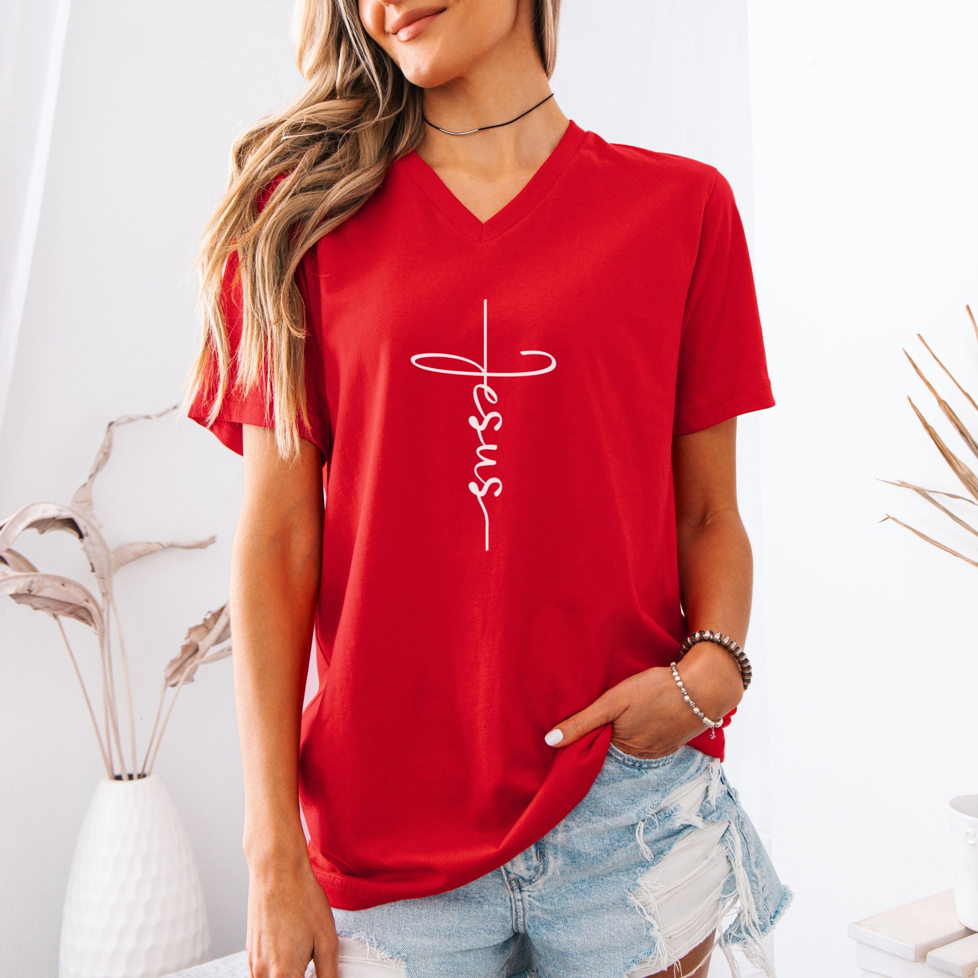 Jesus Cross Unisex V-Neck T-Shirt