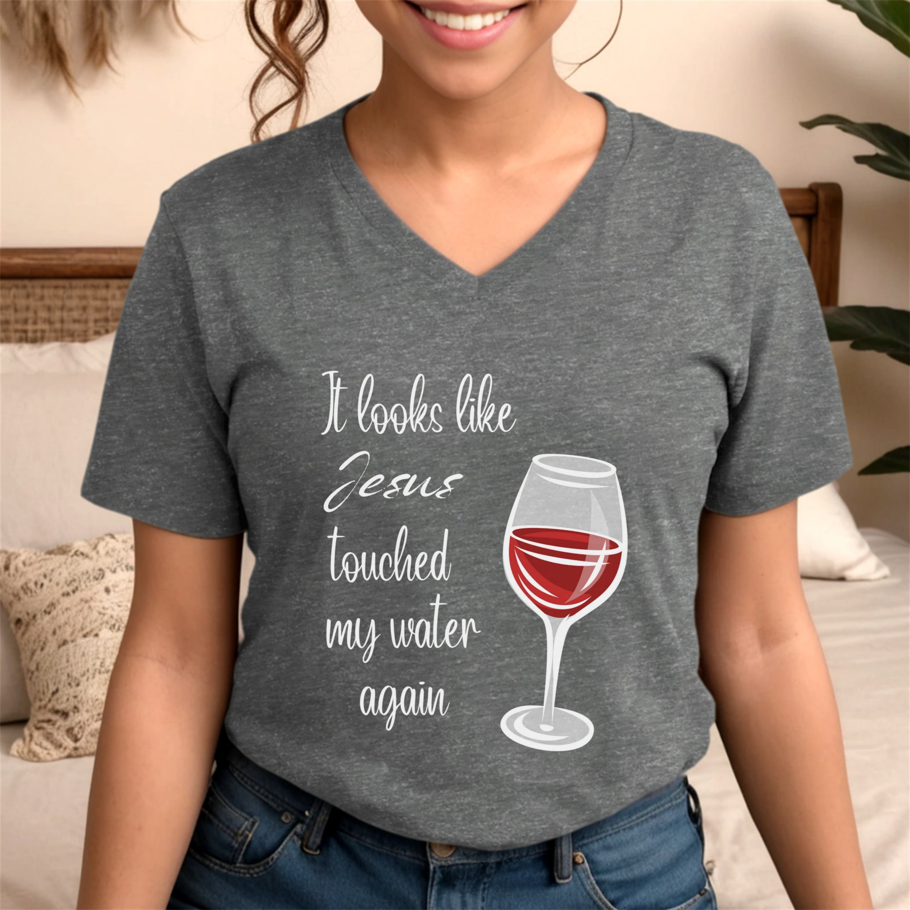Jesus Touched My Water Unisex V-Neck T-Shirt