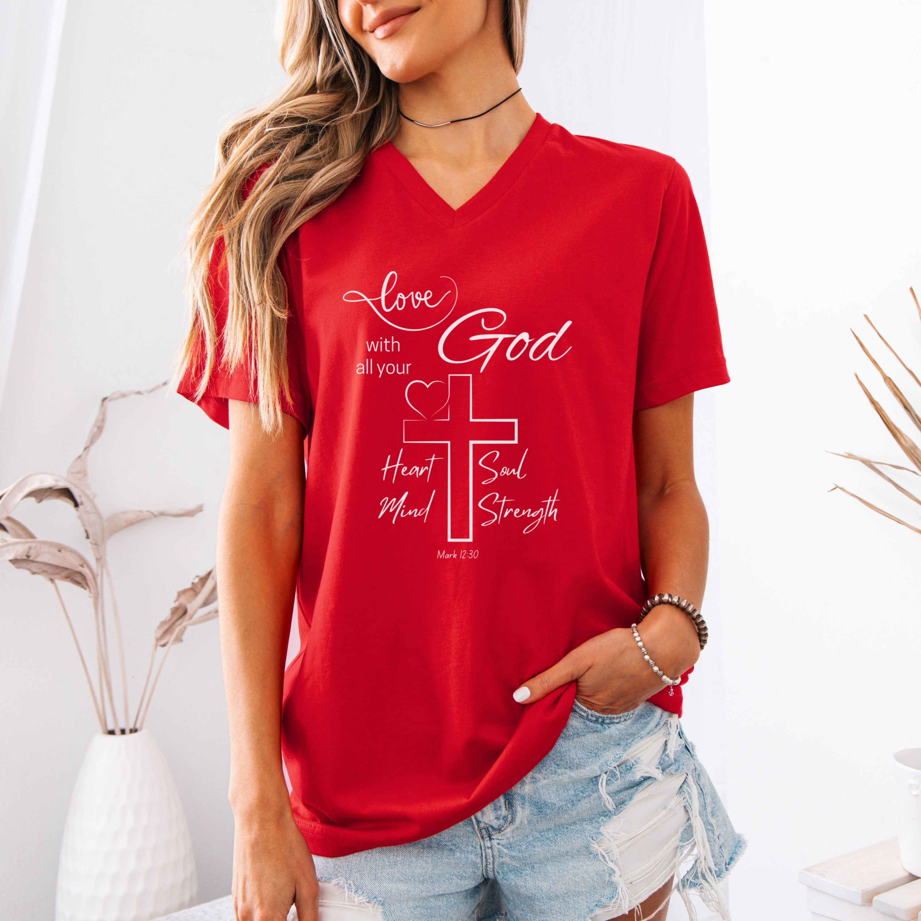 Love God with All Your Heart, Mind, Soul, Strength Unisex V-Neck T-Shirt