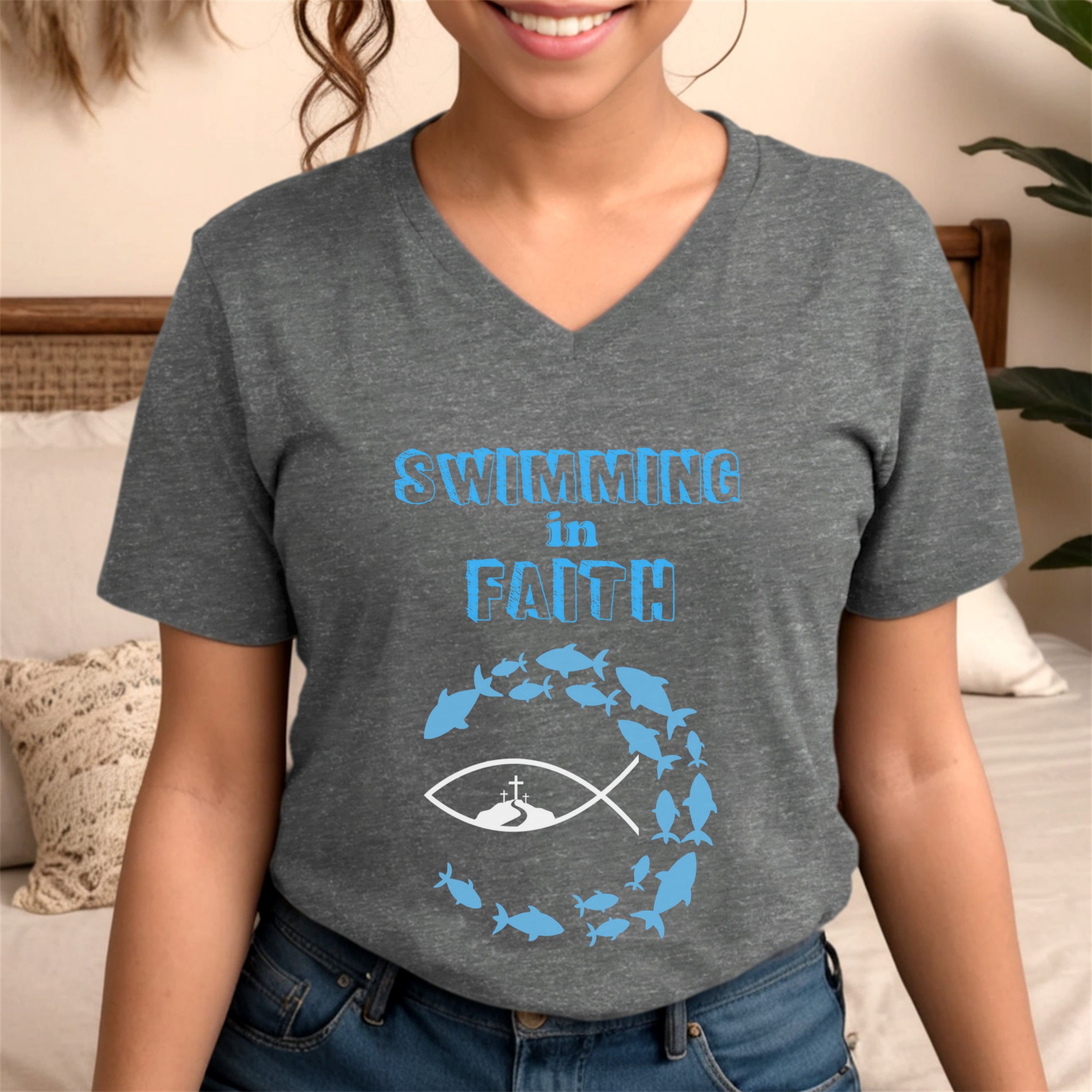 Swimming In Faith Unisex V-Neck Tee