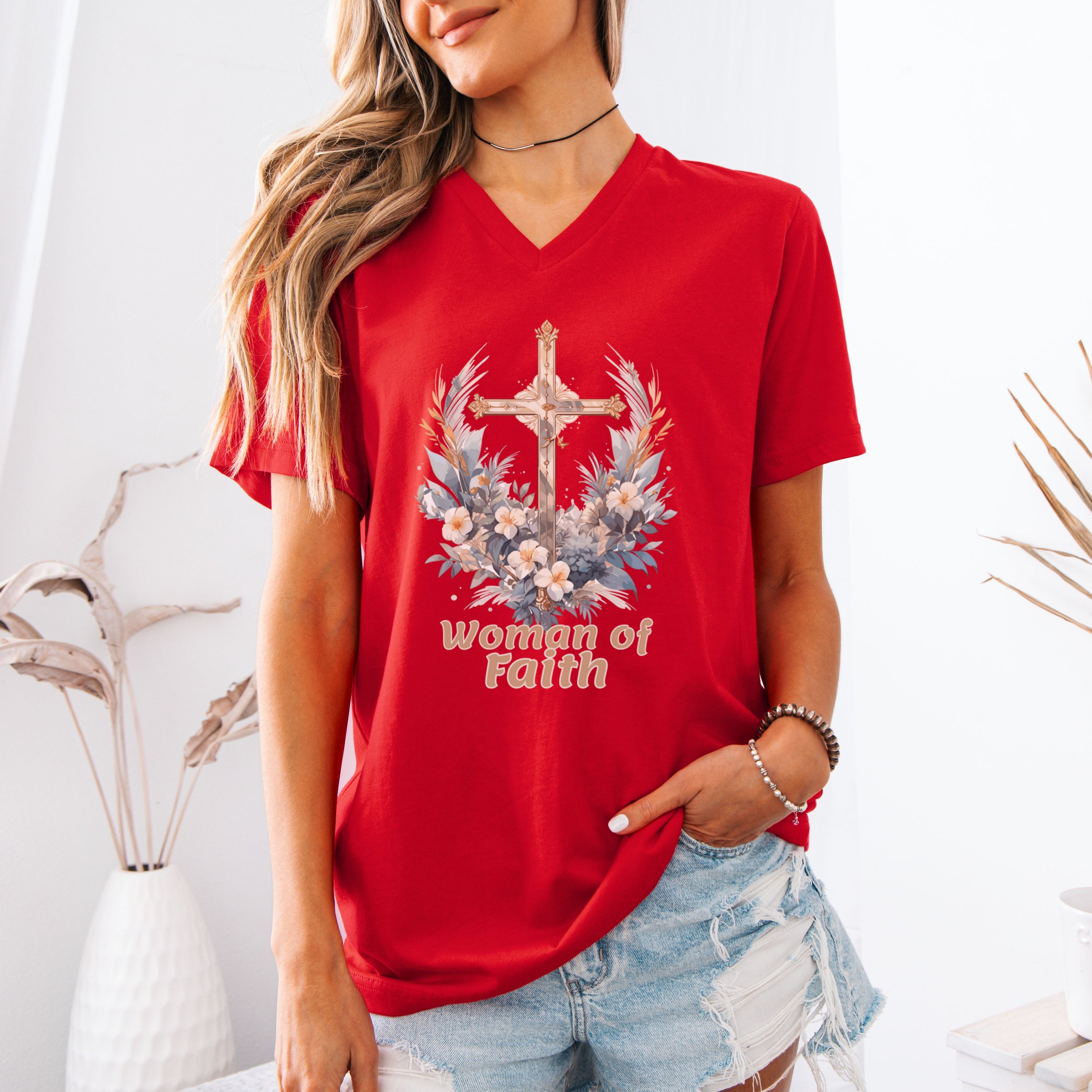 Woman of Faith Unisex V-Neck Short Sleeve T-Shirt