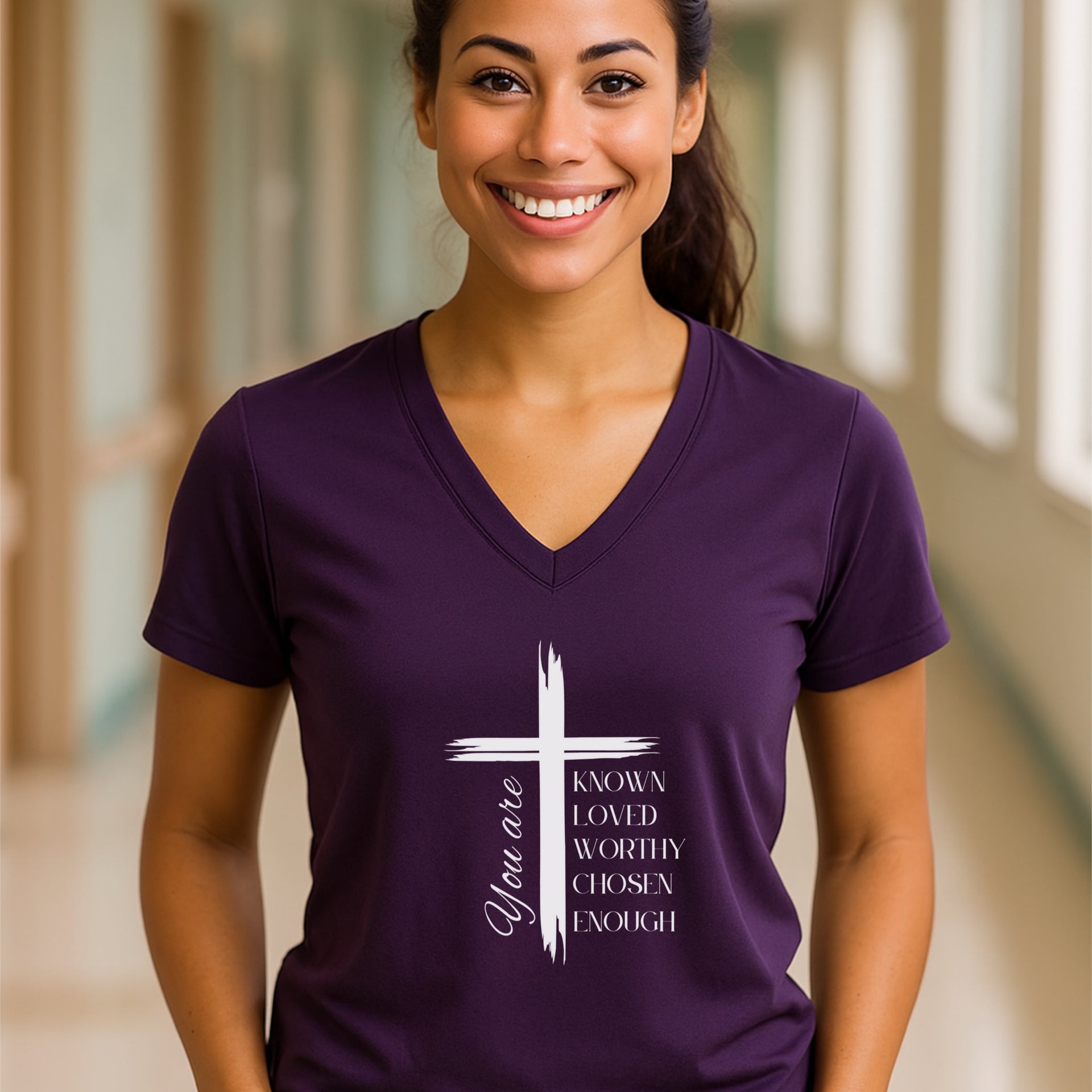 You Are Known, Loved, Worthy, Chosen, Enough Unisex V-Neck T-Shirt