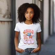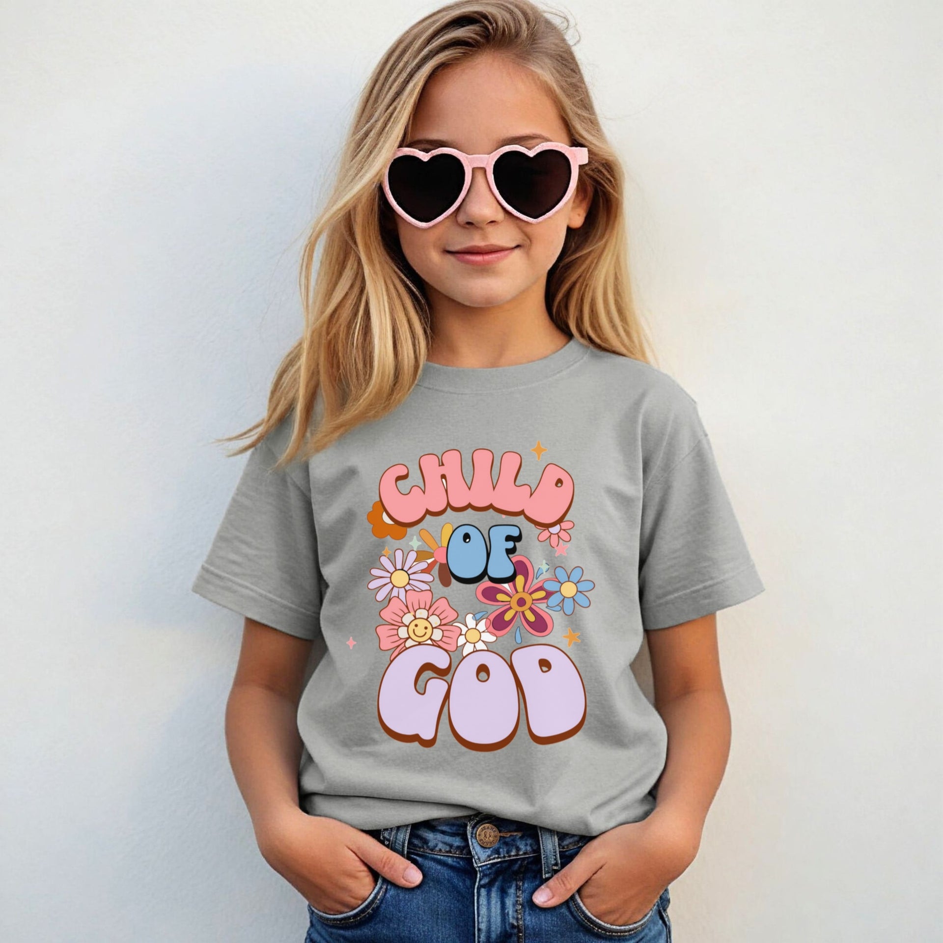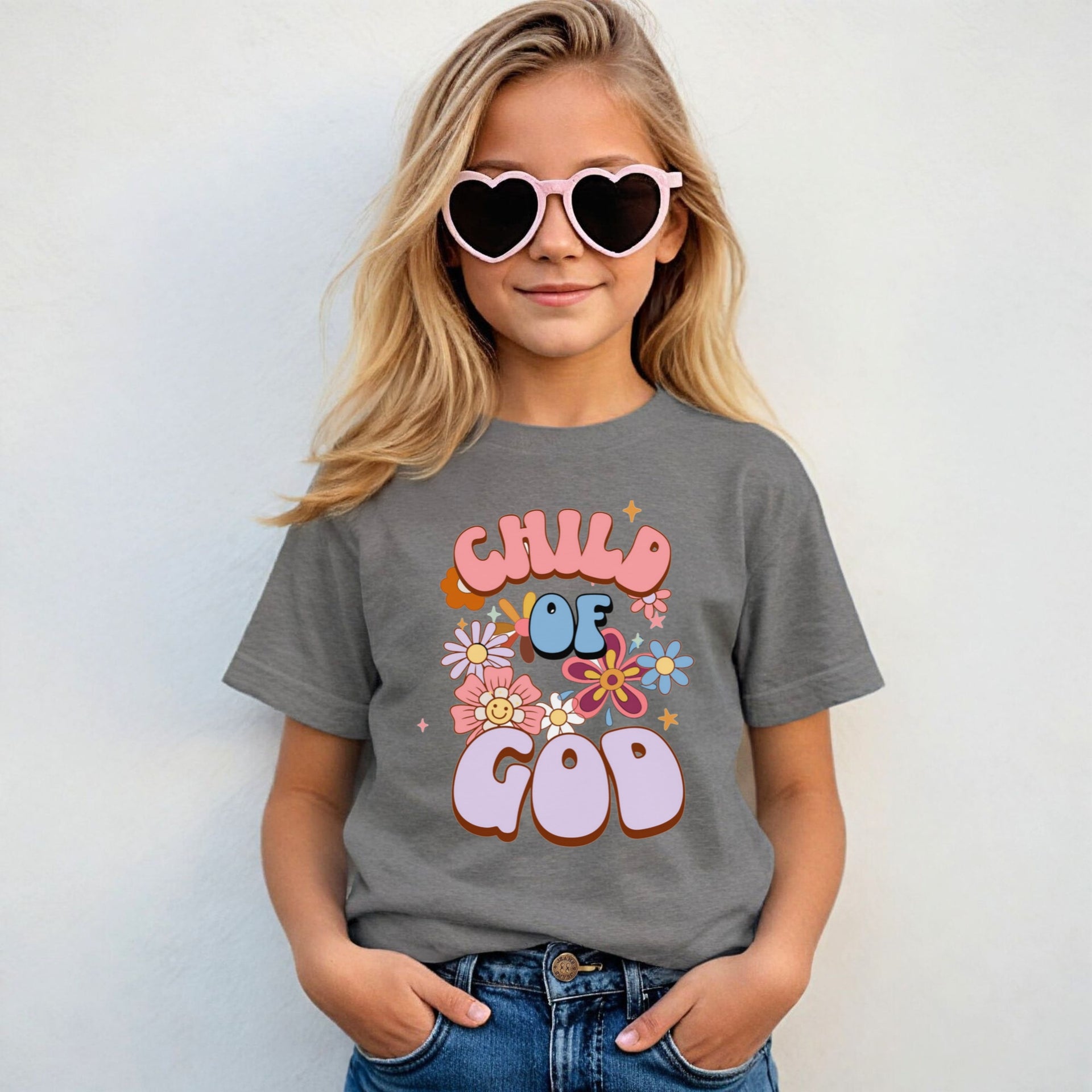 This Child of God Youth T-Shirt is the perfect Christian apparel for kids. Featuring a floral design, this short sleeve tee is a great gift for kids who want to express their faith.