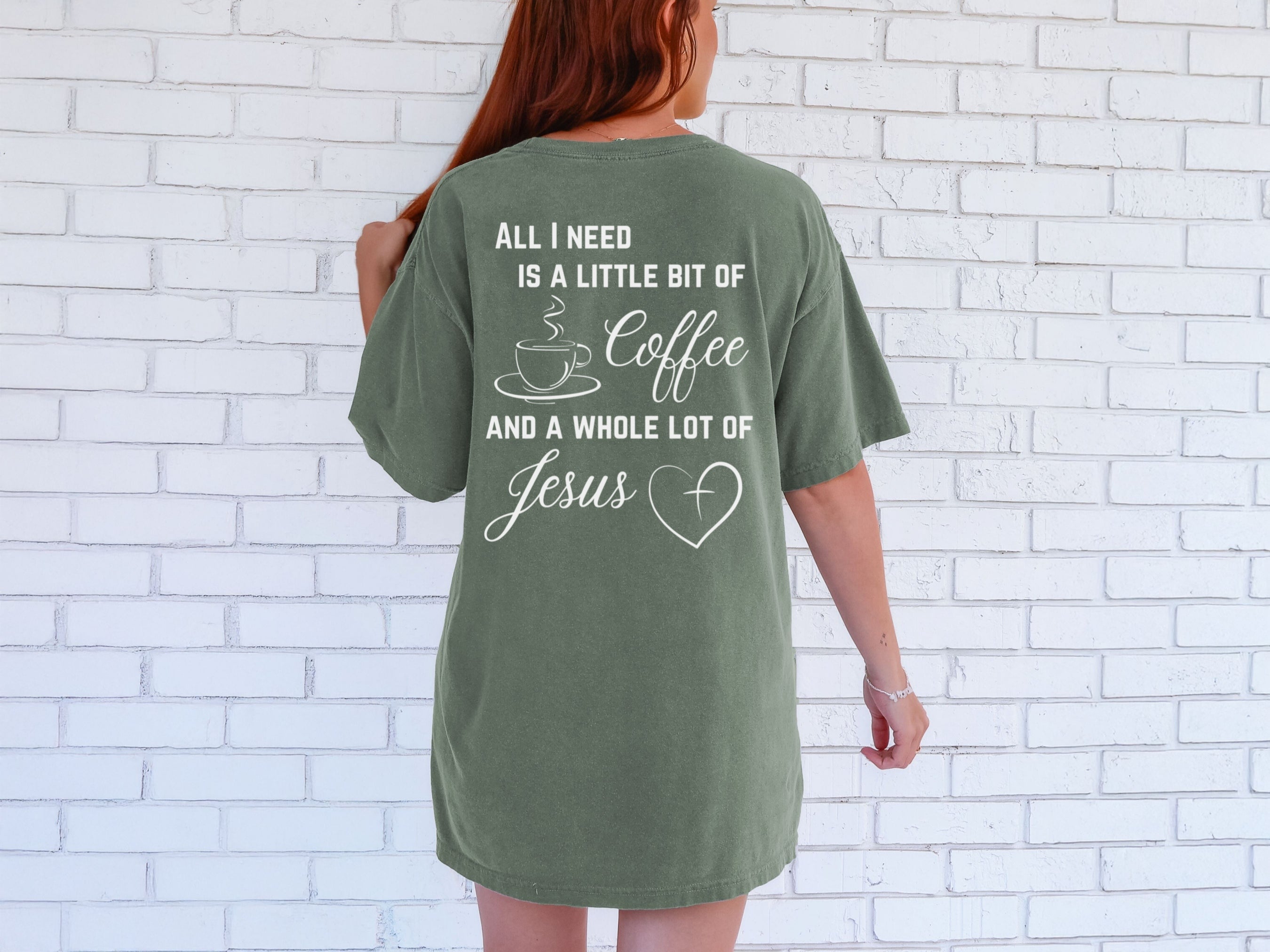 All I Need Is A Little Bit Of Coffee And A Whole Lot Of Jesus Unisex Relaxed Fit T-Shirt