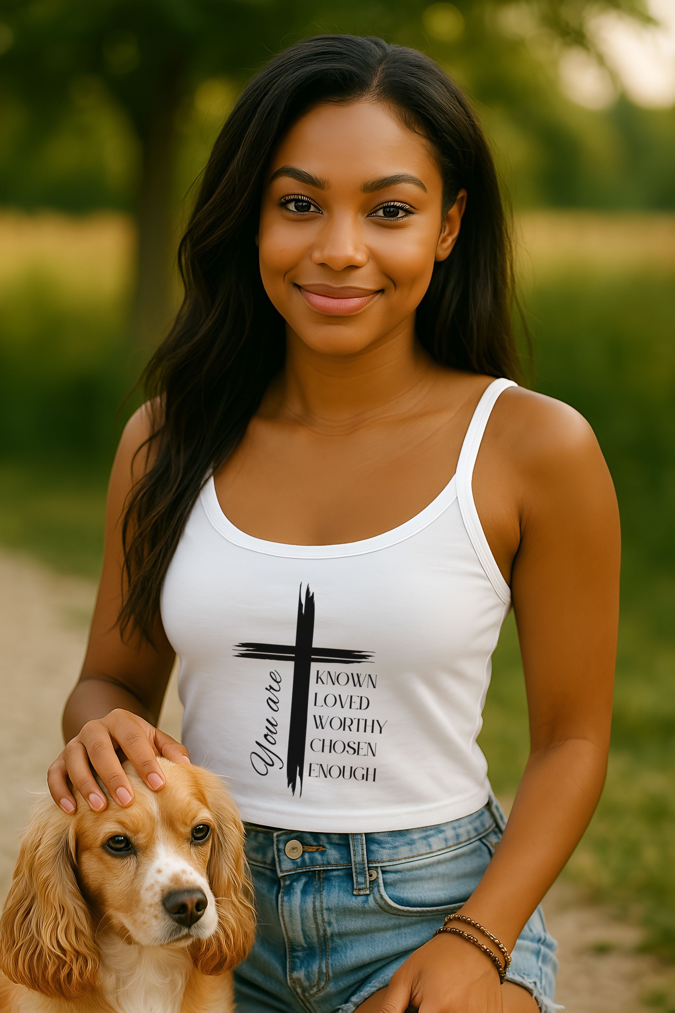 You Are Known, Loved, Worthy, Chosen, Enough, Women's Spaghetti Strap Skip to content